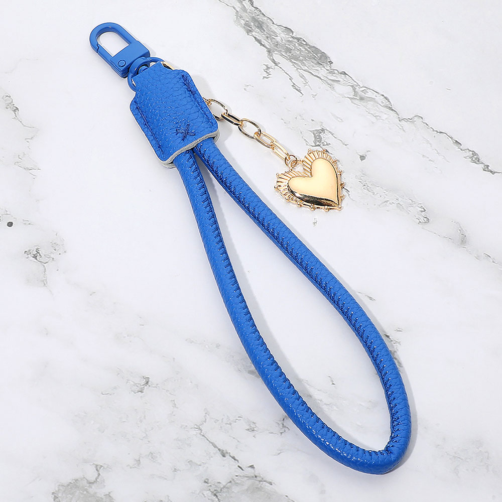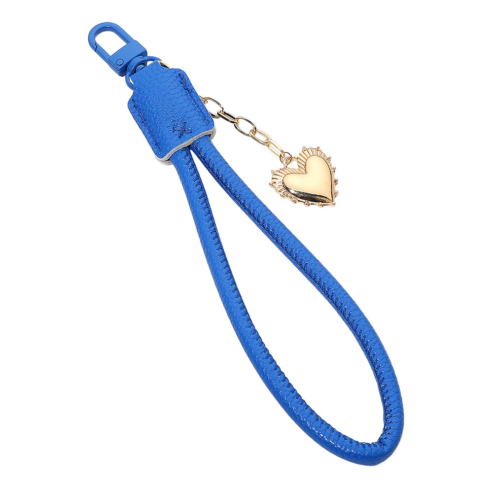 Heart Charm Drop Faux Leather Wristlet Keychain Bag Charm