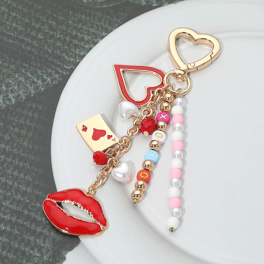 Details • Size : 5.6" L, 1.5" X 4" • Statement bag charm keychain designed with layered heart elements, playful icon charms, and beaded strand accents for eye-catching movement. A stylish accessory upgrade for handbags, backpacks, totes, or keys. Perfect for gifting, boutique collections, seasonal displays, and trendy accessory assortments that highlight personality-driven details and fun, expressive styling. • Lead and Nickel Compliant