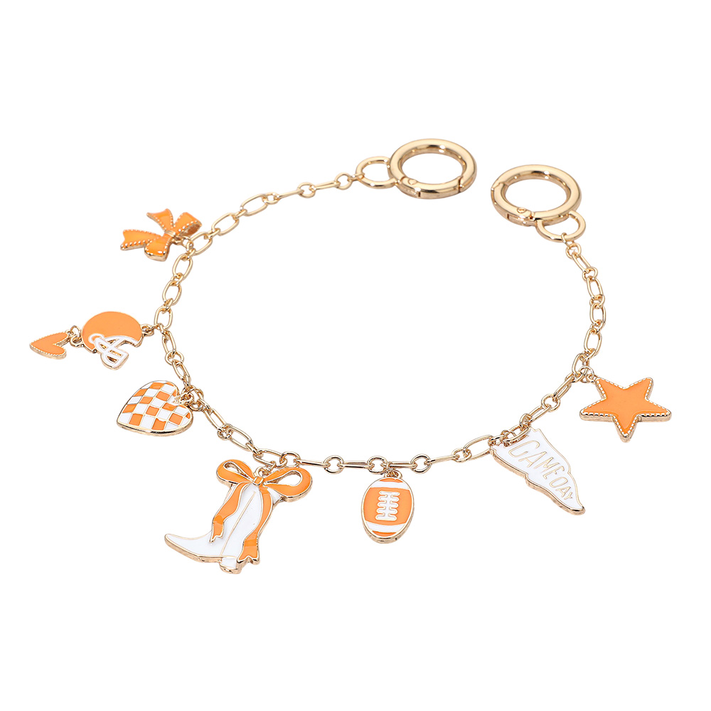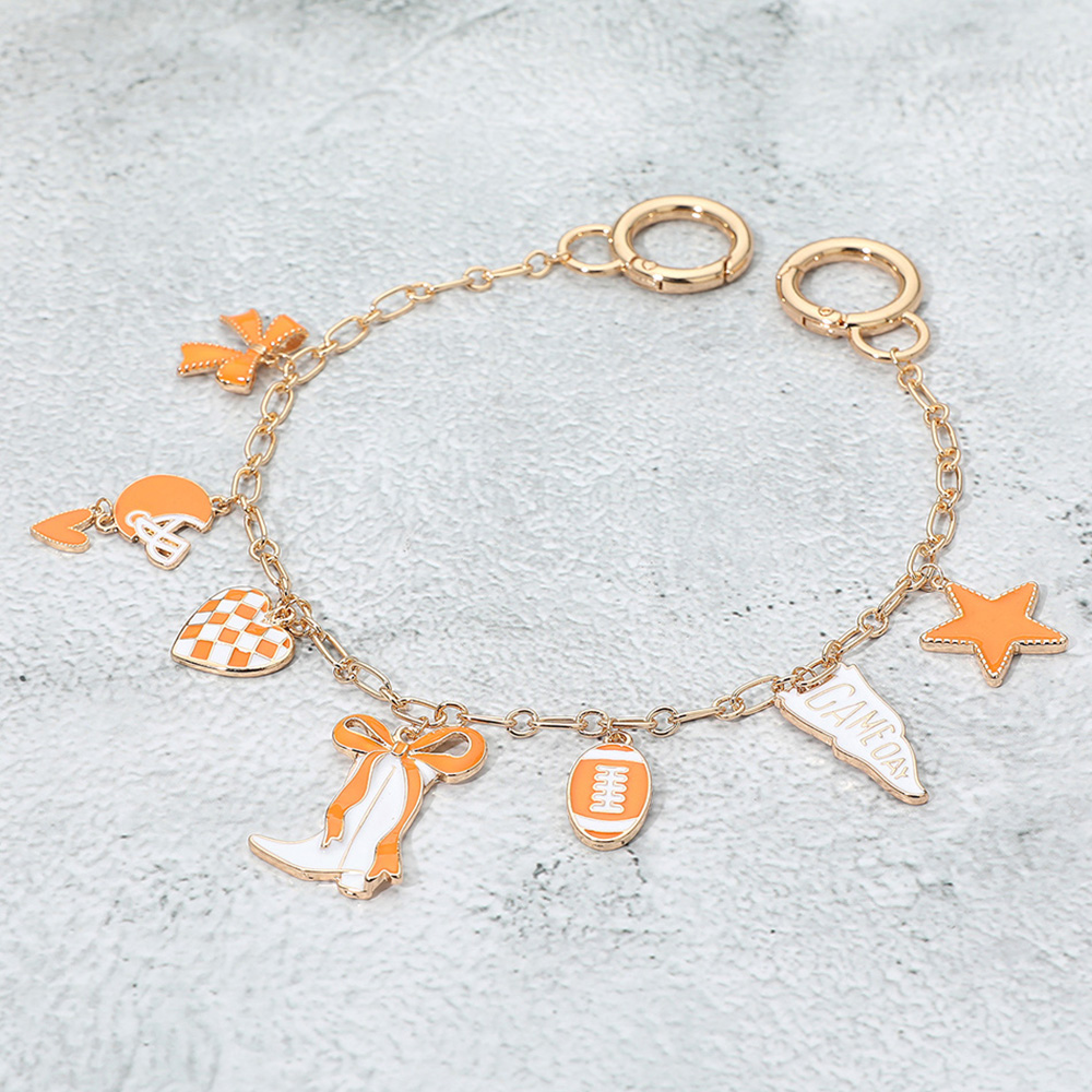 Details • Size : 13.5" L • Decor Size : 1.3" L • Bag charm featuring playful gameday accents including football, helmet, boots, stars, hearts, and cheer icons. A fun accessory to show team spirit, personalize bags, and add a sporty touch to gameday outfits. • Lead and Nickel Compliant