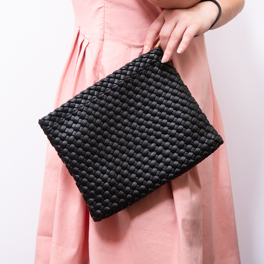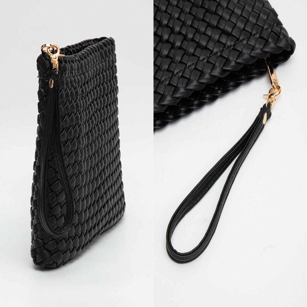 Faux Braided Leather Clutch Bag