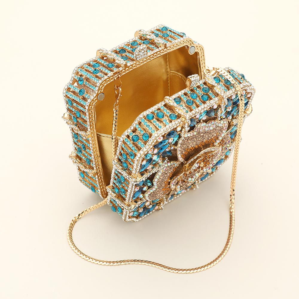 Crystal Rhinestone Embellished Flower Pointed Square Evening Clutch Shoulder Bag