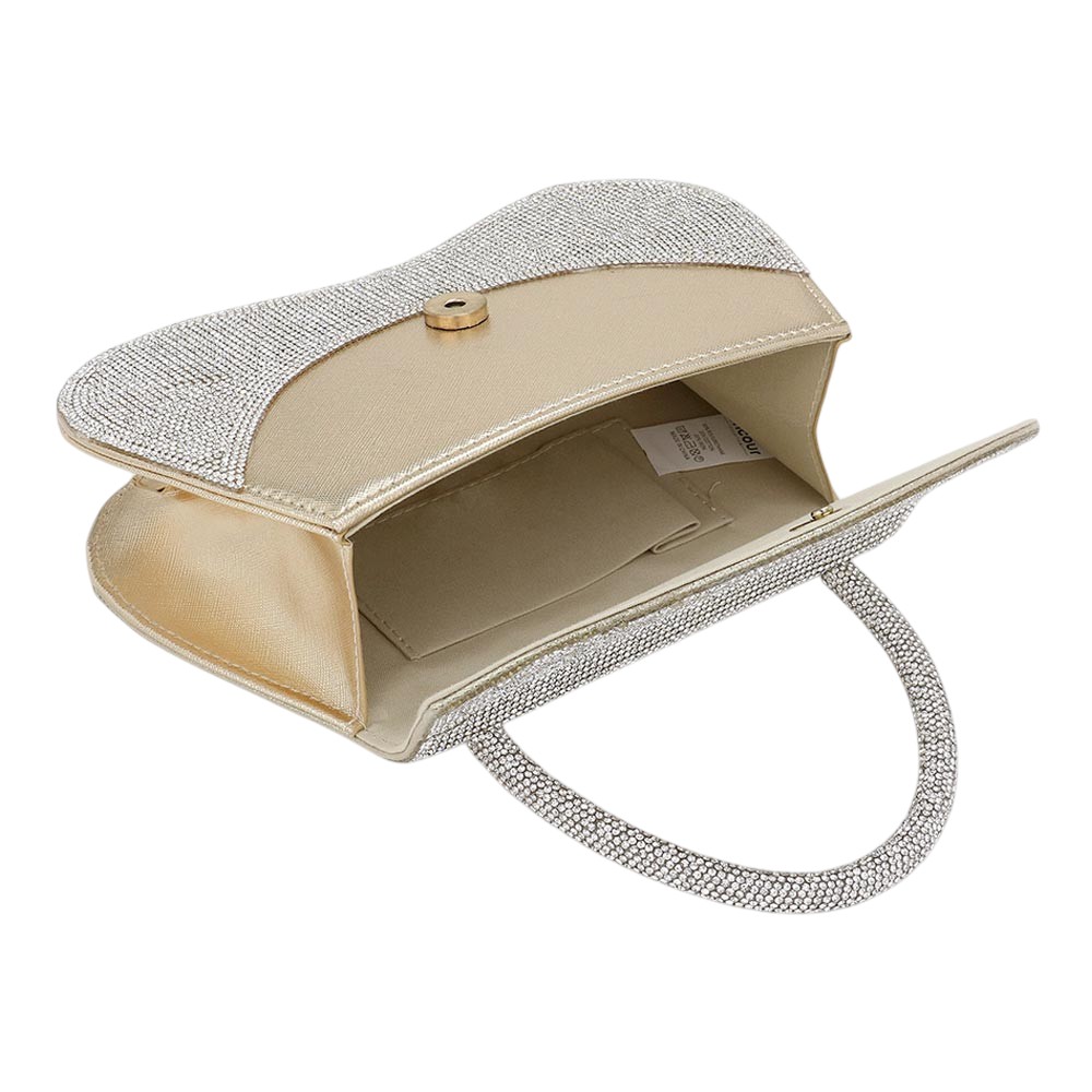 Details • Size : 9" X 5.5" X 2.3" • Top Handle Size : 3.5" L • Strap Size : 46" L / Detachable • Material : 60% Polyurethane, 20% Cotton, 20% Iron • Magnetic Closure • One Inside Slip Pocket • Discover a refined rhinestone handle bag featuring a sculpted flap design, spacious interior, and detachable chain strap. Perfect for evenings and special events, this statement accessory offers versatile styling and timeless sophistication in a compact form.