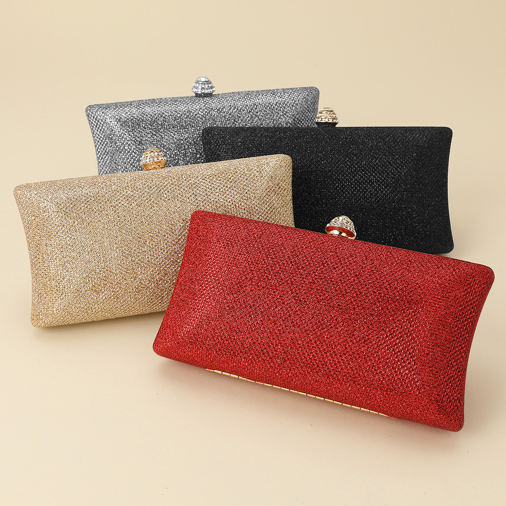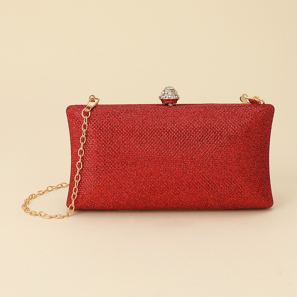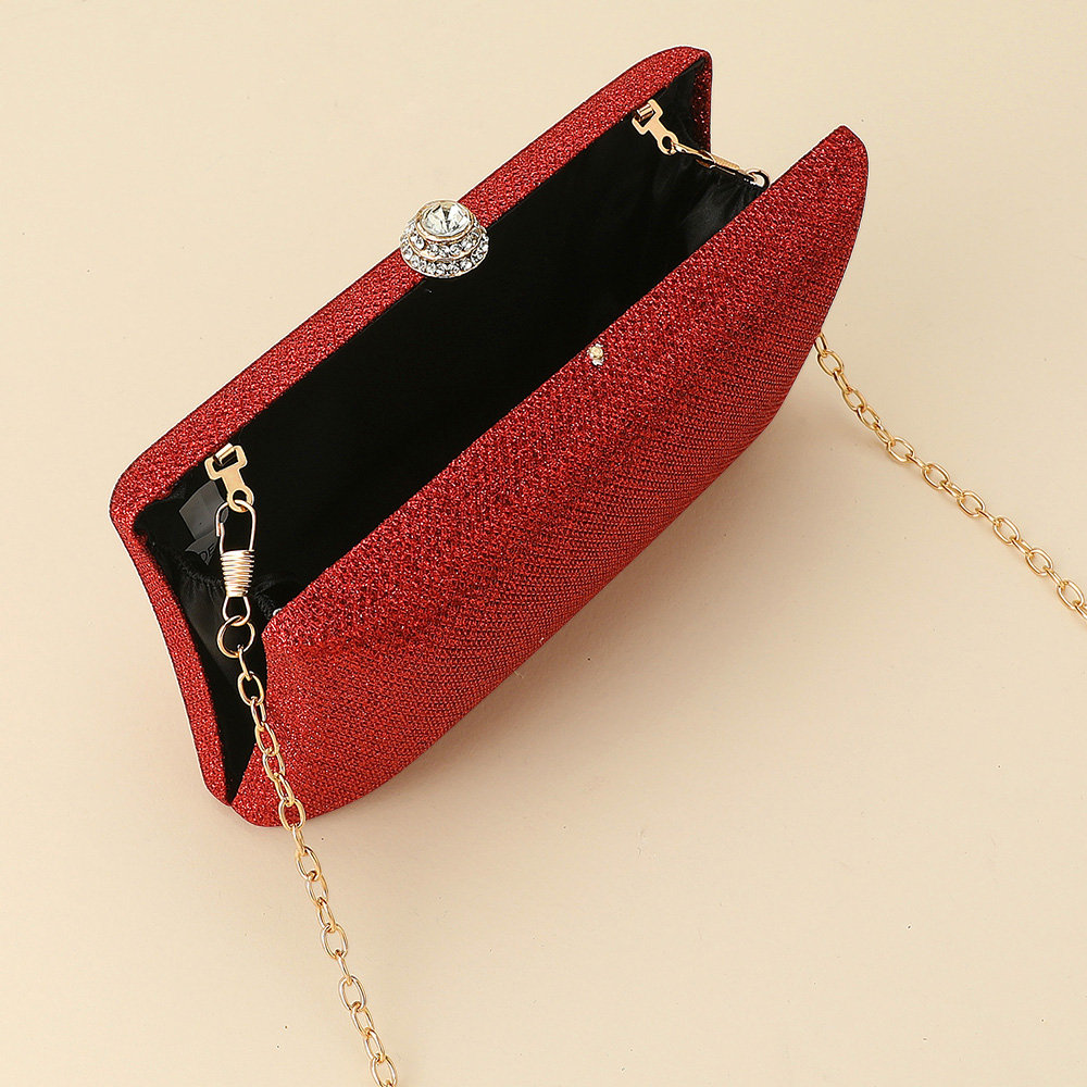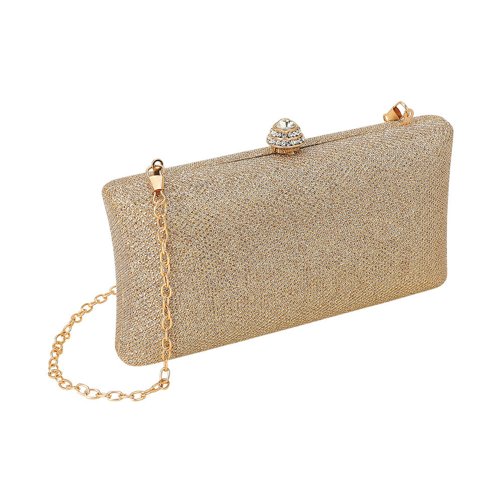Details • Size : 7.25" X 4.25" X 2.25" • Strap Size : 46" L / Detachable • Clasp Closure • Chic evening clutch designed with a sparkling rhinestone clasp and detachable chain strap for versatile wear. Perfect for weddings, galas, or special events, this stylish handbag offers refined elegance while keeping your essentials secure in a sleek, timeless silhouette.