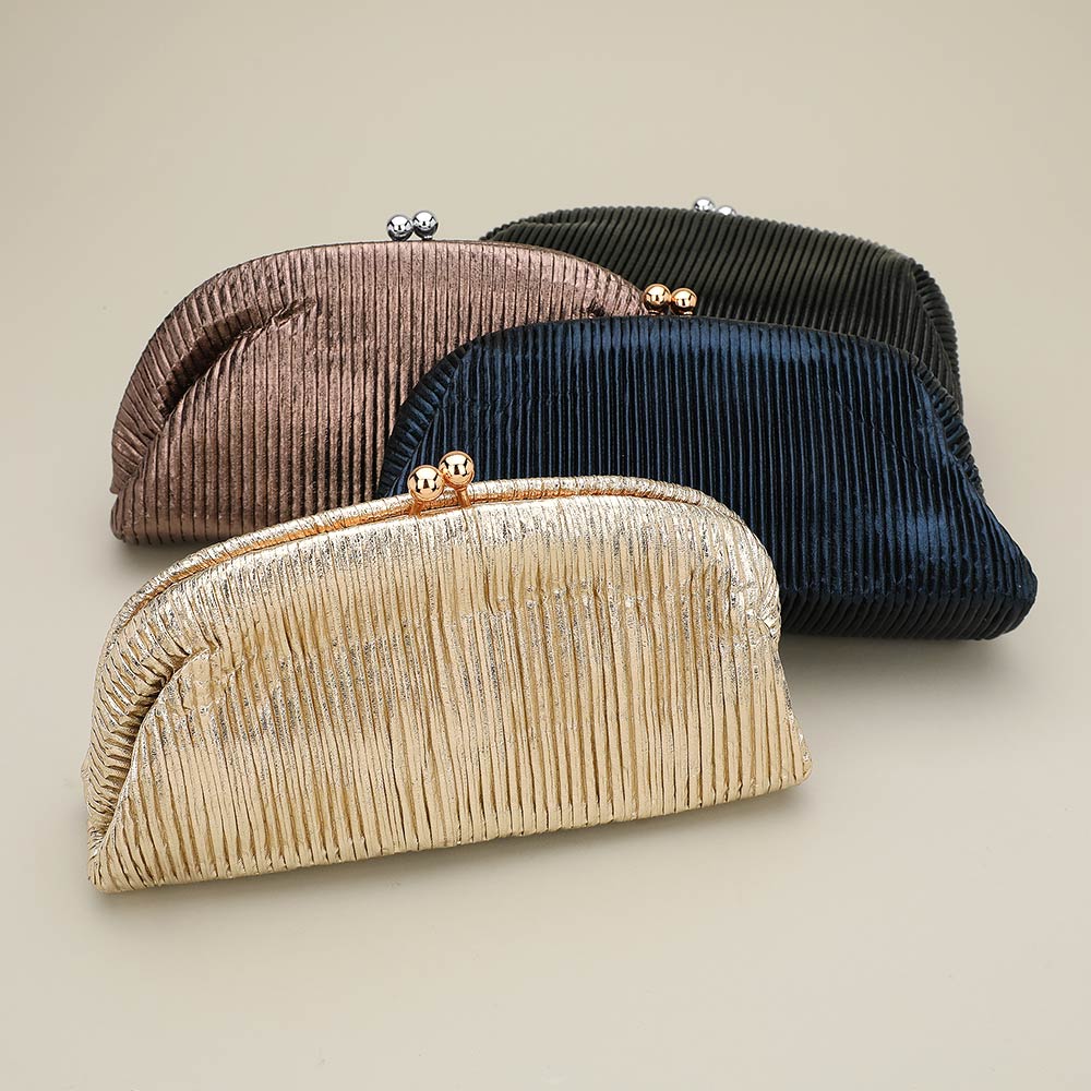 • Discover a refined pleated evening clutch designed for effortless elegance at formal events. Featuring a secure kiss-lock closure, spacious interior pocket, and detachable chain strap, this timeless accessory keeps essentials organized while elevating any special-occasion look.