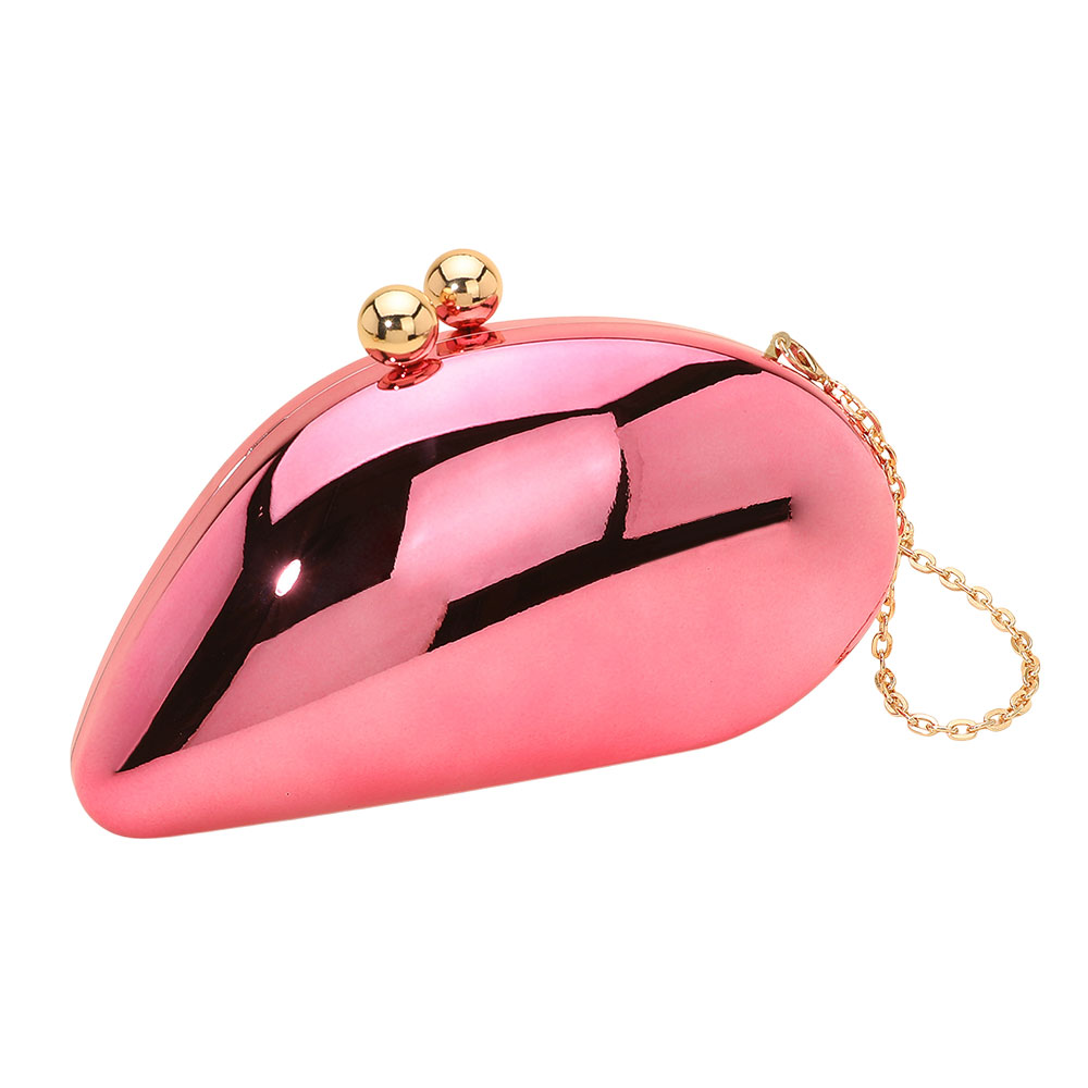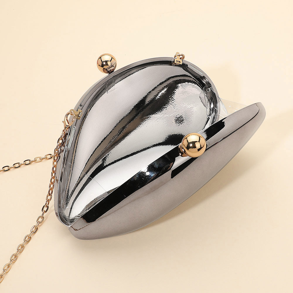 Details • Size : 8.75" X 4.75" X 2.75" • Strap Size : 46" L / Detachable • Elevate any outfit with this modern teardrop-shaped evening clutch, designed with a smooth reflective finish and a chic chain strap. Its secure clasp closure and sculptural silhouette make it a standout accessory perfect for formal events, nights out, or special occasions.