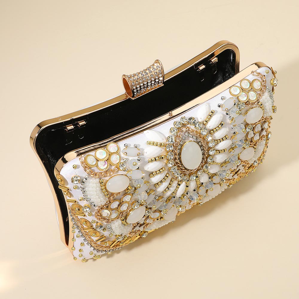 Ornate Gem Beaded Embellishment Evening Clutch Crossbody Bag