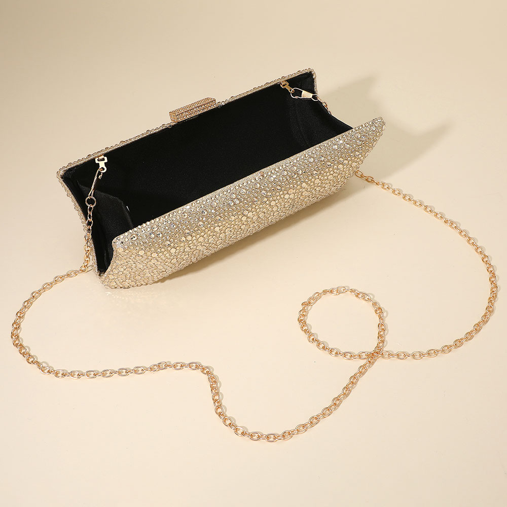 • This dazzling rhinestone clutch adds instant glamour to any evening look. Featuring a sleek rectangular design and a detachable chain strap, it offers versatile carry options. Perfect for weddings, parties, or formal events, this clutch keeps essentials secure in chic style.