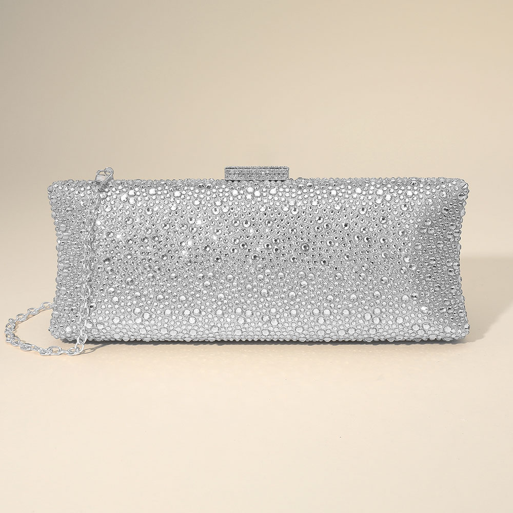 • This dazzling rhinestone clutch adds instant glamour to any evening look. Featuring a sleek rectangular design and a detachable chain strap, it offers versatile carry options. Perfect for weddings, parties, or formal events, this clutch keeps essentials secure in chic style.