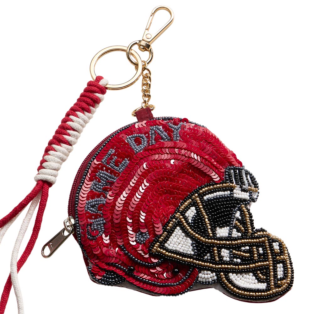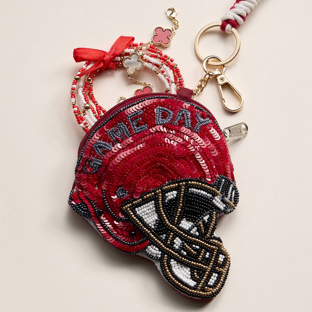 GEORGIA GAME DAY Football Helmet Sequin Seed Beaded Knot Keychain Mini Pouch Bag