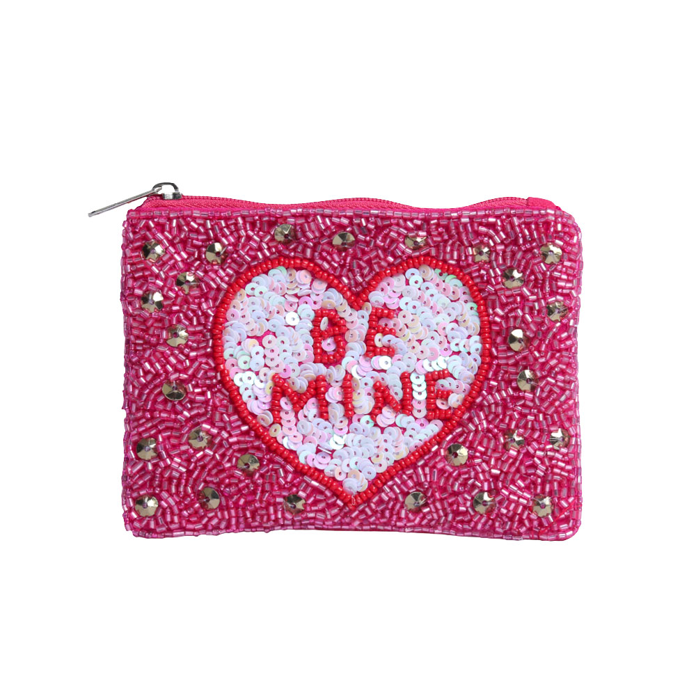 Details • Size : 5" X 3.75" (appx) • No Inside Pocket • Beads On Front Only • Bag Only (items are not included) • Zipper Closure • Add a touch of charm to your accessories with this beaded coin pouch featuring a sparkling heart and sweet “Be Mine” message. Perfect for gifting or everyday use, it keeps small essentials secure while offering a playful, festive accent for any occasion. • Made In India