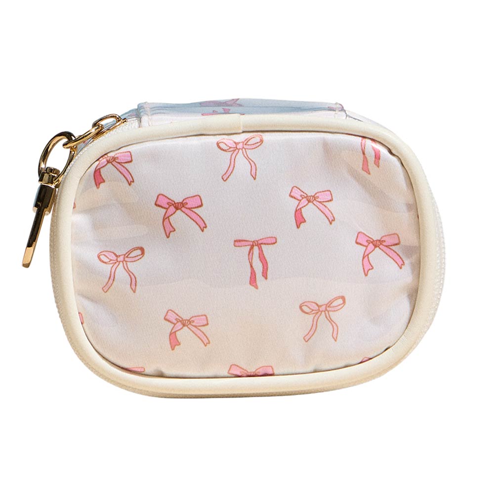 Details • Size : 4" X 3" X 2" • Zipper Closure • Compact mini zip pouch designed for easy organization of small essentials like cosmetics, accessories, keys, or travel items. Features a secure zipper closure, structured shape for easy access, and a convenient clip for attaching to bags or luggage. Perfect for everyday carry, travel organization, or gifting.