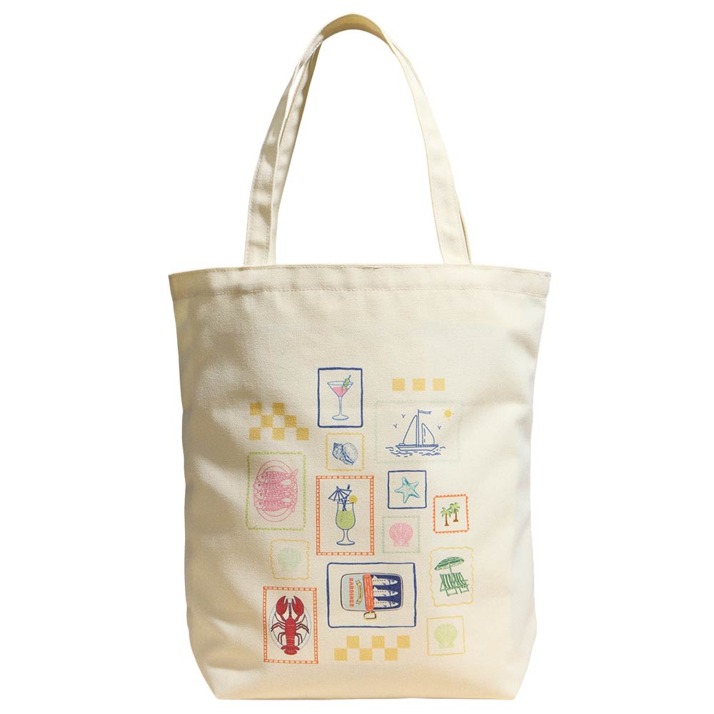 Details • Size : 14.5" X 14.5" • Top Handle Size : 8" L • Stylish everyday tote bag featuring playful coastal-inspired icon artwork for effortless daily use. Designed with an easy carry handle and roomy interior to hold essentials for shopping, travel, beach days, or casual outings. A versatile statement bag that adds personality to boutiques, gift shops, and lifestyle accessory collections.