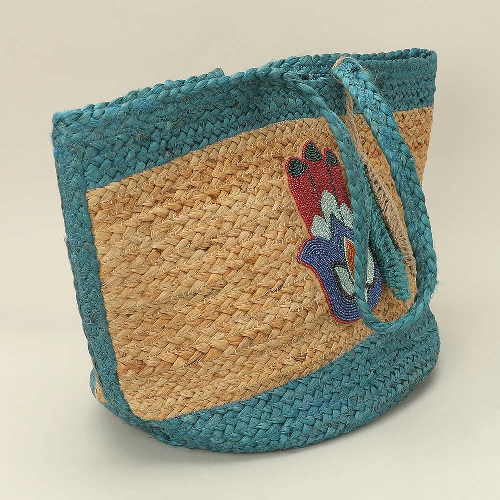 Details • Size : 19" X 10" X 13" • Top Handle Size : 10.25" L • Bag Charm Size : 8.5" L • Statement woven tote bag designed with an embroidered hand-inspired motif and decorative tassel accent for a unique, eye-catching look. Spacious interior comfortably holds daily essentials, making it ideal for shopping, travel, or casual outings. A lightweight, standout accessory perfect for boutiques seeking artistic, trend-forward tote bags. • Made In India