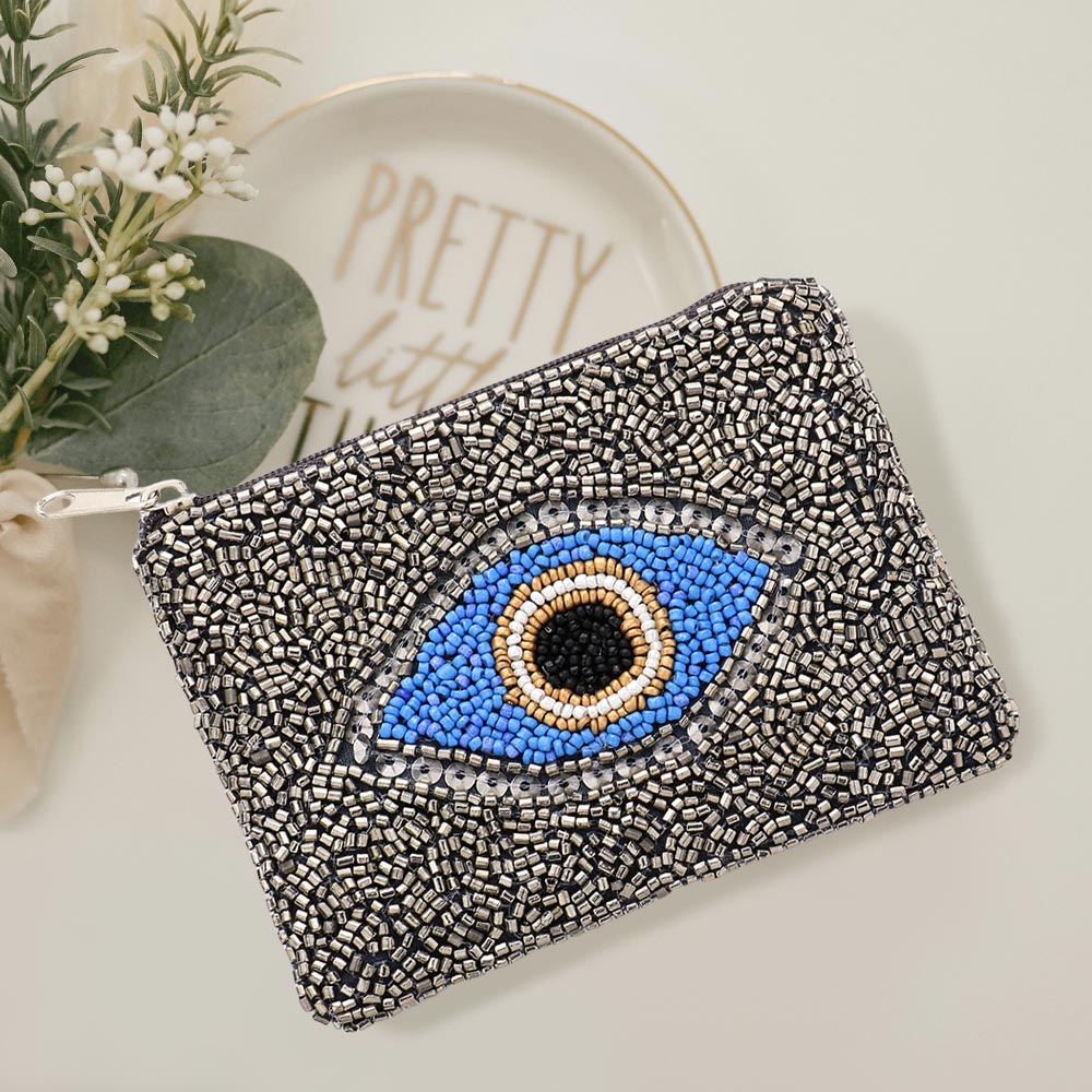 Metal Evil Eye Pendant Faceted Beaded Necklace