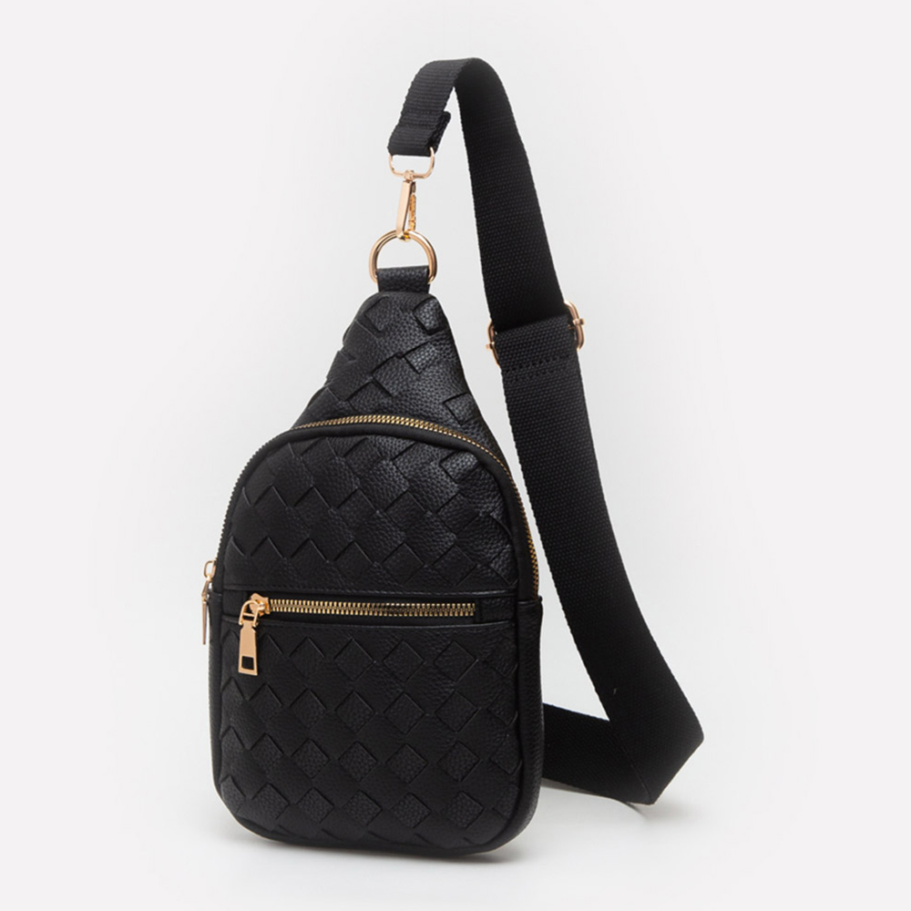 Details • Size : 6.5" X 11" X 1" • Strap Size : 49.5" L / Detachable, Adjustable • Zipper Closure • Two Outside Zipper Pockets • One Inside Slip Pocket • Add stylish convenience to your day with this woven pattern sling crossbody bag. Featuring a compact design, adjustable strap, and secure zip compartments, it’s the perfect everyday accessory for keeping essentials close while elevating your casual or travel look.