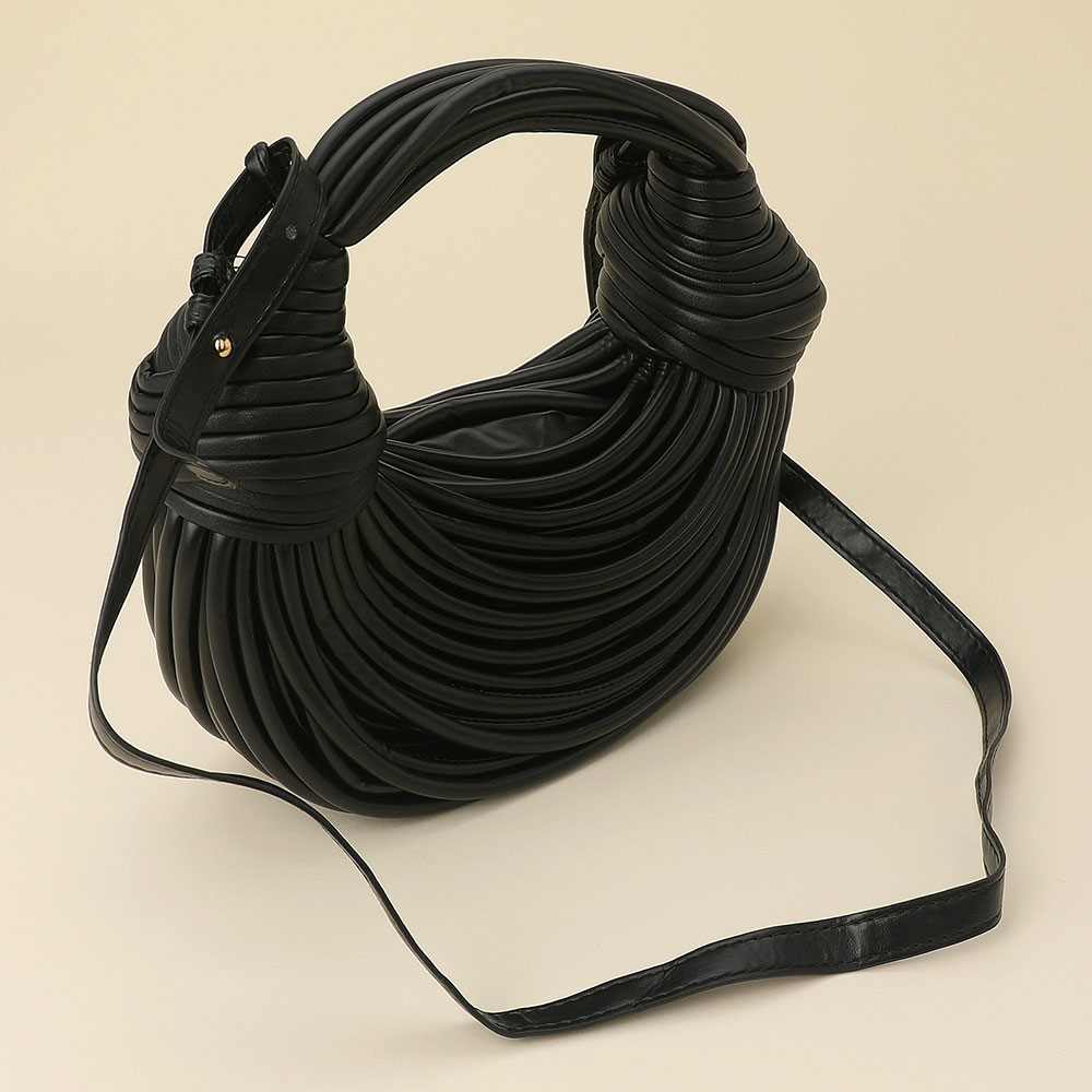 • Stand out with this textured statement shoulder bag featuring a sculpted design and intricate wrapped detailing. Its modern silhouette and artistic structure make it a versatile piece that adds a touch of high-fashion sophistication to any day or evening ensemble.