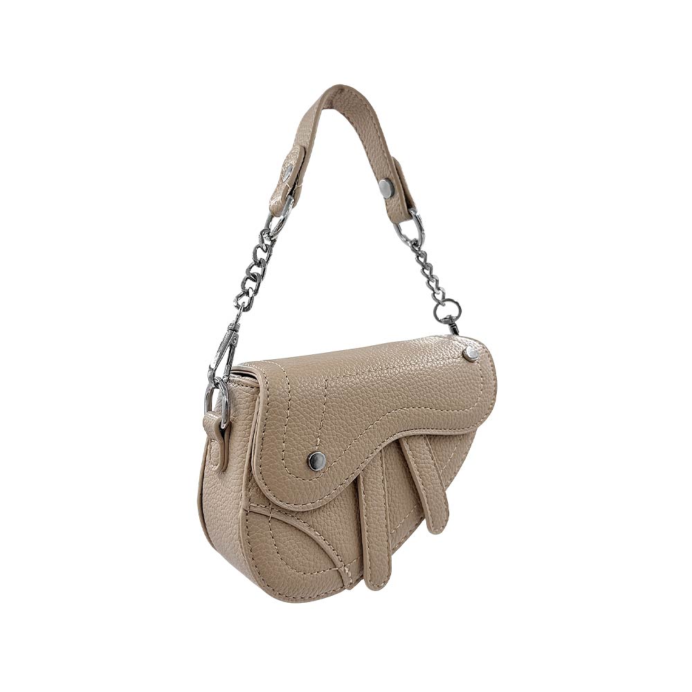 • This mini saddle style shoulder bag features a compact silhouette with a secure flap closure for everyday convenience. Designed with a structured shape and comfortable shoulder strap, it is ideal for casual outings, travel, and day-to-night styling while keeping essentials neatly organized and easy to access.