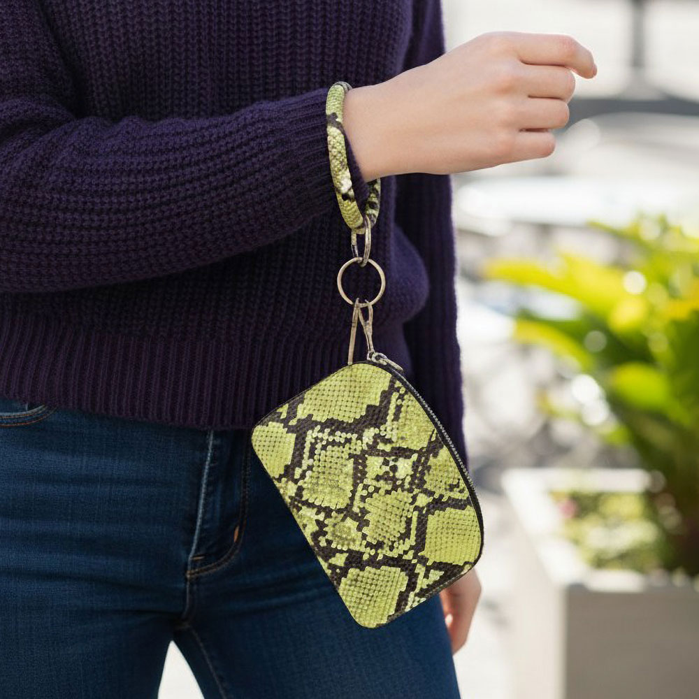 Details • Size : 3.75" D, 12"L • Bag Size : 5.5" x 4" • Detachable • Zip Closure • Bracelet / Key Chain / Pouch Bag • Key not included • Compact wristlet keychain coin pouch featuring a zippered mini case and attached key ring for organized everyday carry. Ideal for holding small essentials like coins, cards, earbuds, or keys while keeping items secure and easy to reach for travel, errands, or gifting.