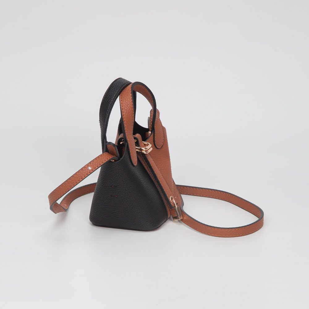 Faux Leather Two Tone Mini Crossbody Bucket Bag