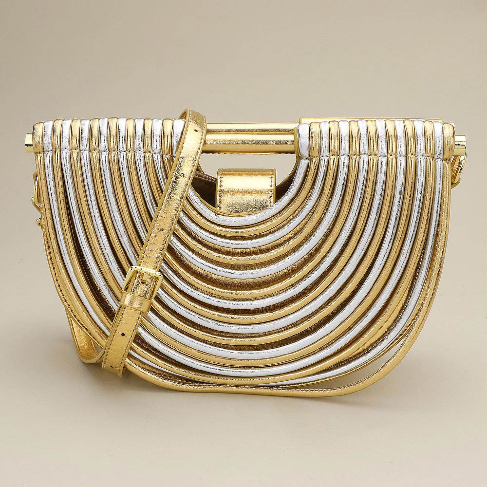 Faux Leather Unique Half Moon Structured Handbag Crossbody Bag