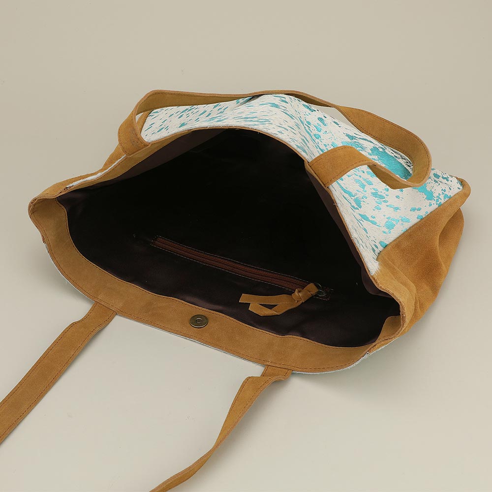 • Chic cowhide tote bag with patterned front panel, long shoulder straps, and secure magnetic closure. Features a spacious interior with zip pocket for organized storage. Ideal for daily use, travel, work essentials, or stylish on-the-go carrying.