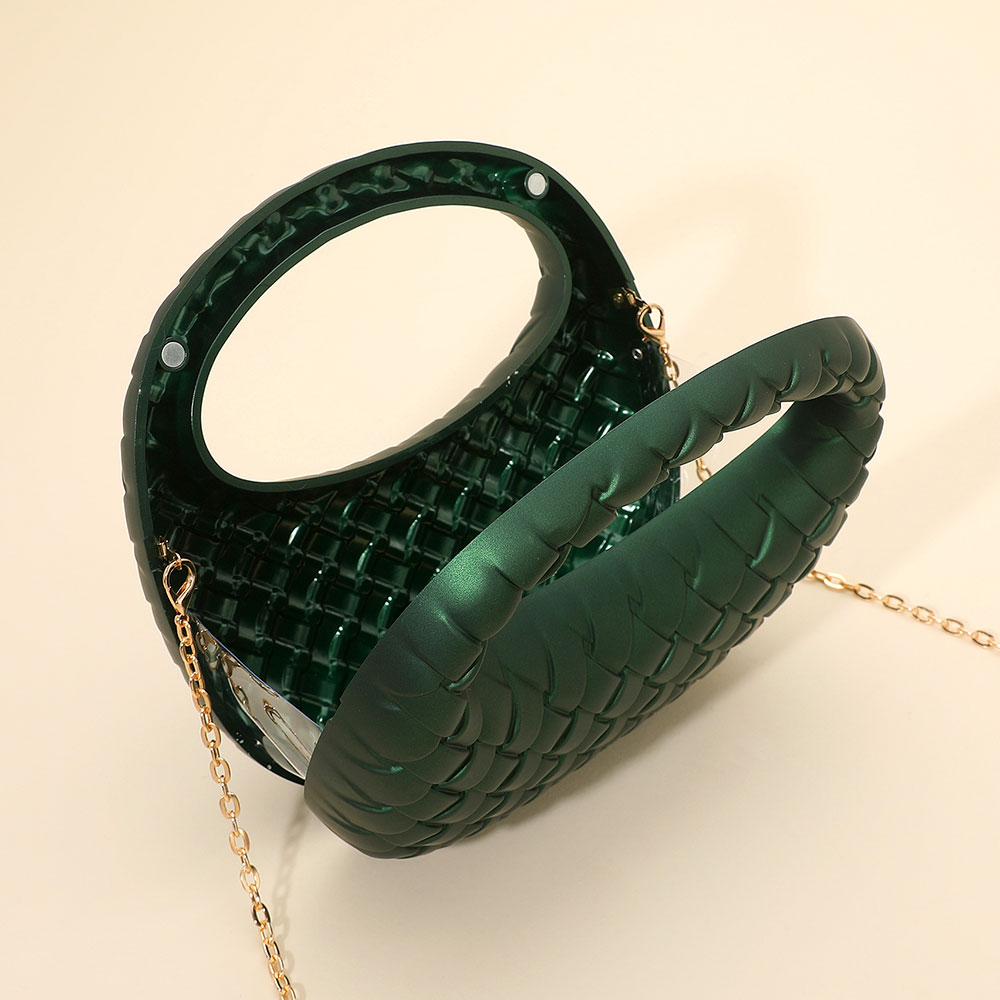 Hard Shell Braided Woven Top Handle Crossbody Handbag
