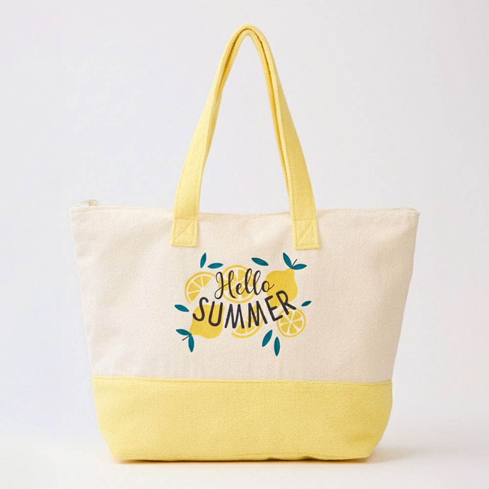 HELLO SUMMER Message Citrus Graphic Printed Terry Tote Bag