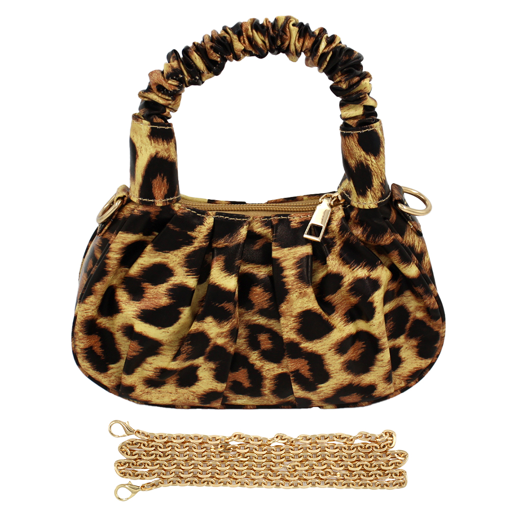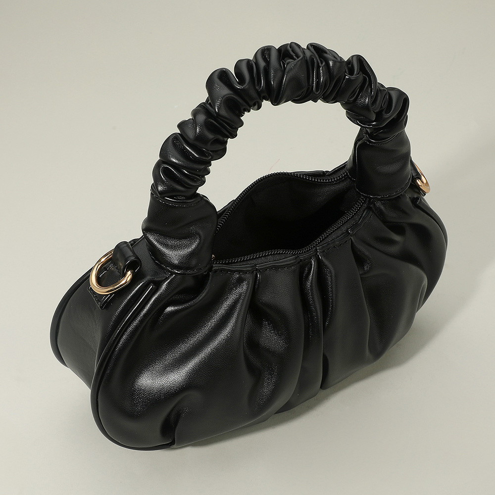 Details • Size : 8.25" X 4.75" X 2.75" • Top Handle Size : 3.25" L • Strap Size : 50" L / Detachable • Zipper Closure • Elevate any outfit with this chic ruched handbag featuring a gathered handle and chain detail. Its modern silhouette and versatile design make it perfect for day-to-night wear, adding effortless style and sophistication to your look.