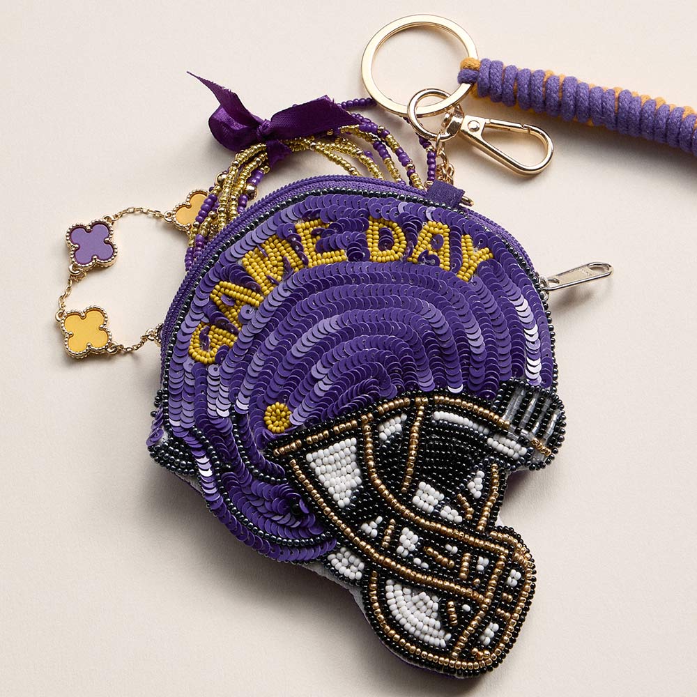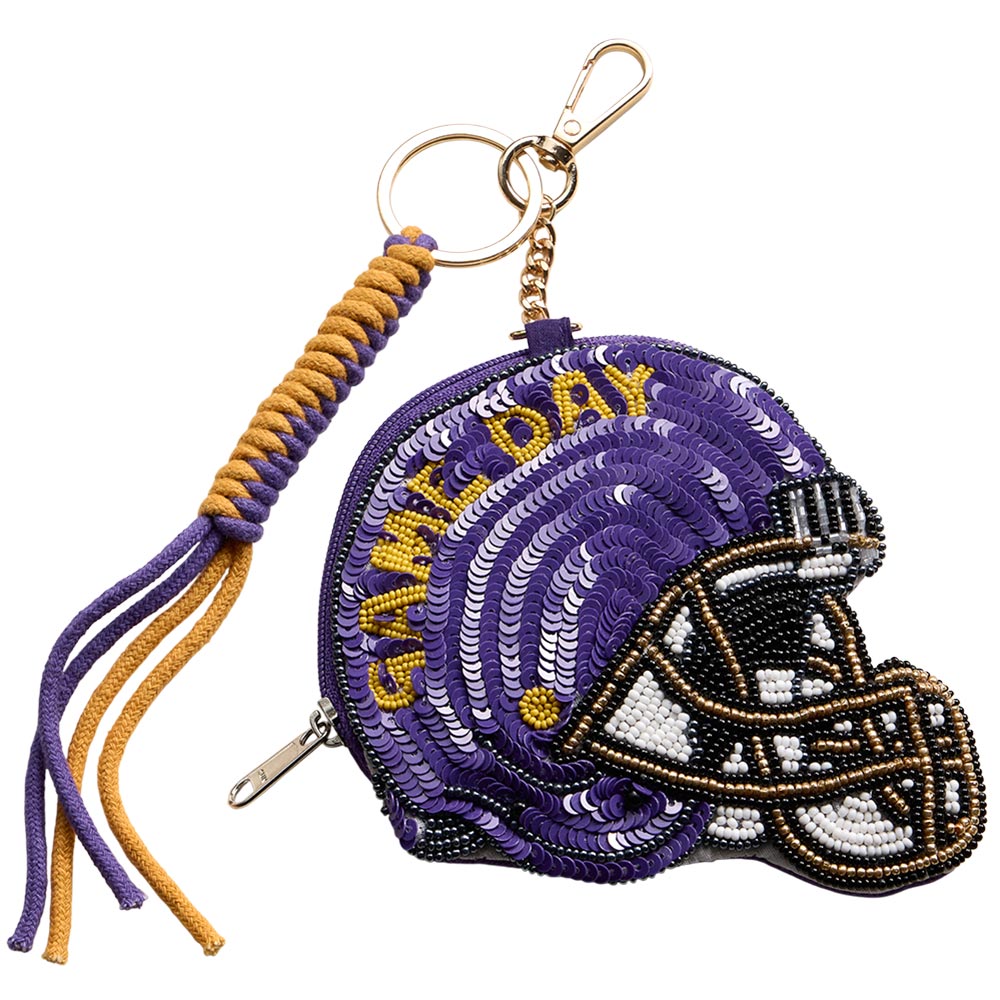LSU GAME DAY Football Helmet Sequin Seed Beaded Knot Keychain Mini Pouch Bag