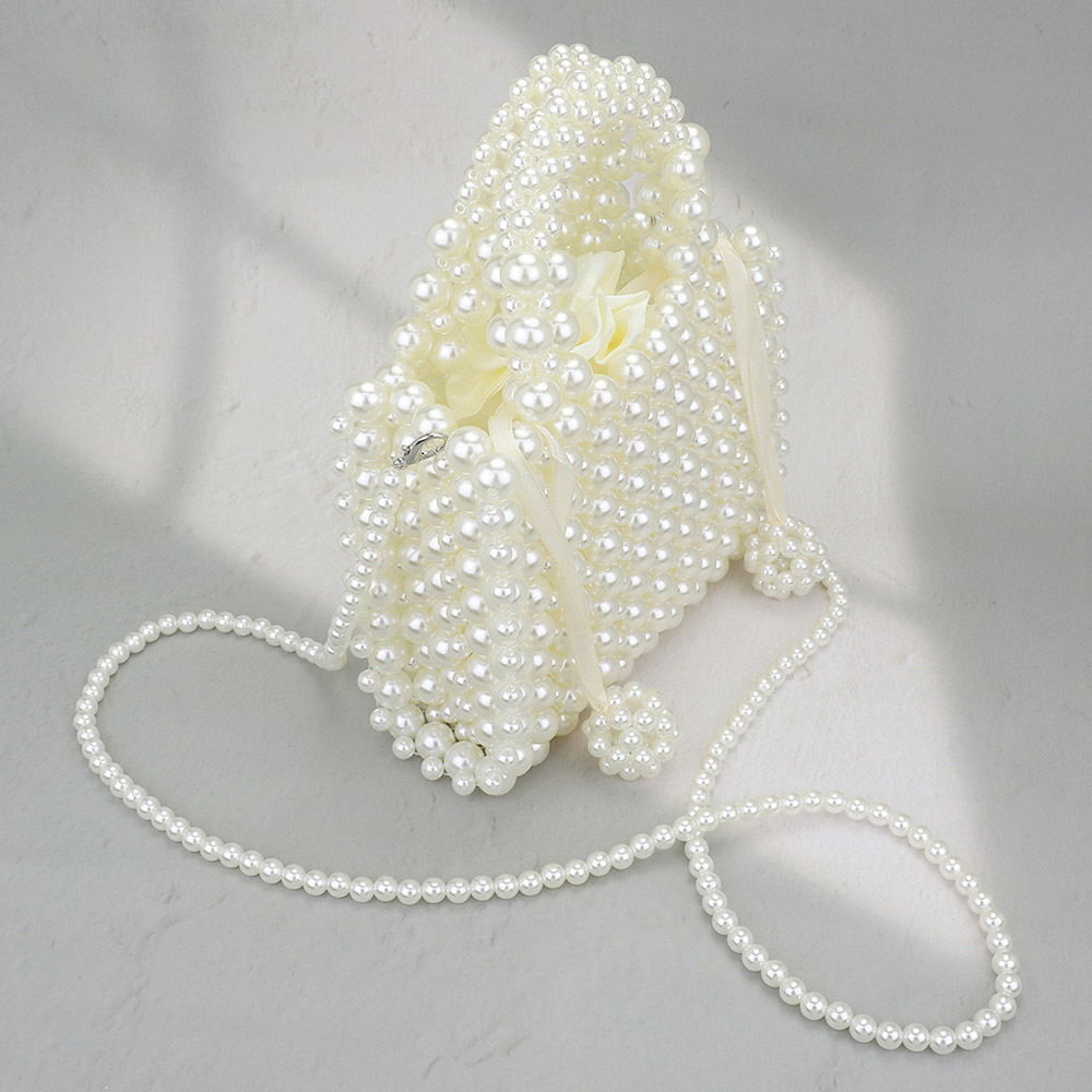Details • Size : 7" X 5" X 2" • Top Handle Size : 2.5" L • Strap Size : 44" L / Detachable, Adjustable • Inside Pouch Size : 5" X 6.75" • Chic mini handbag featuring a structured pearl beaded exterior, dual handles, and a soft drawstring pouch. Ideal for weddings, parties, or formal events, it adds a refined and unique flair to any ensemble.