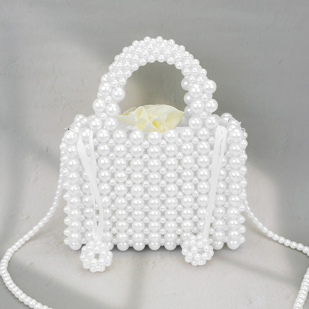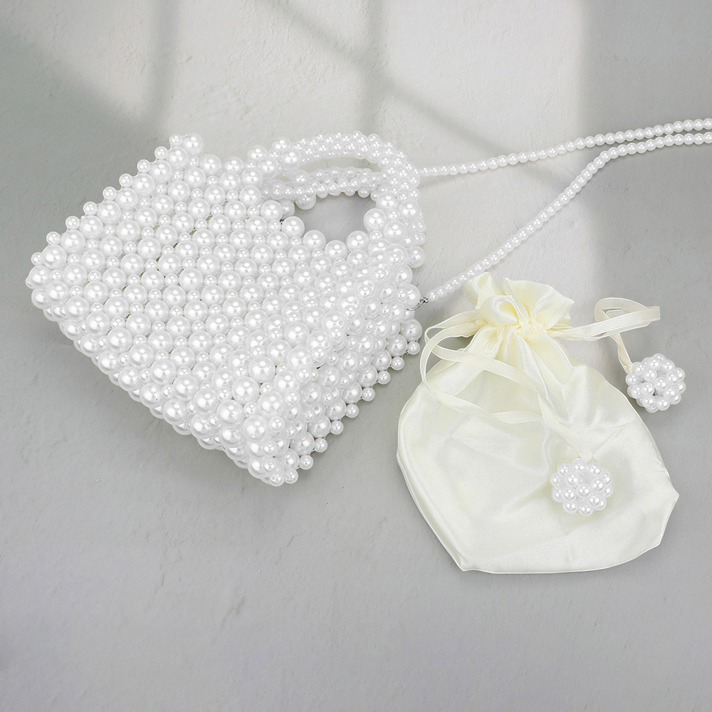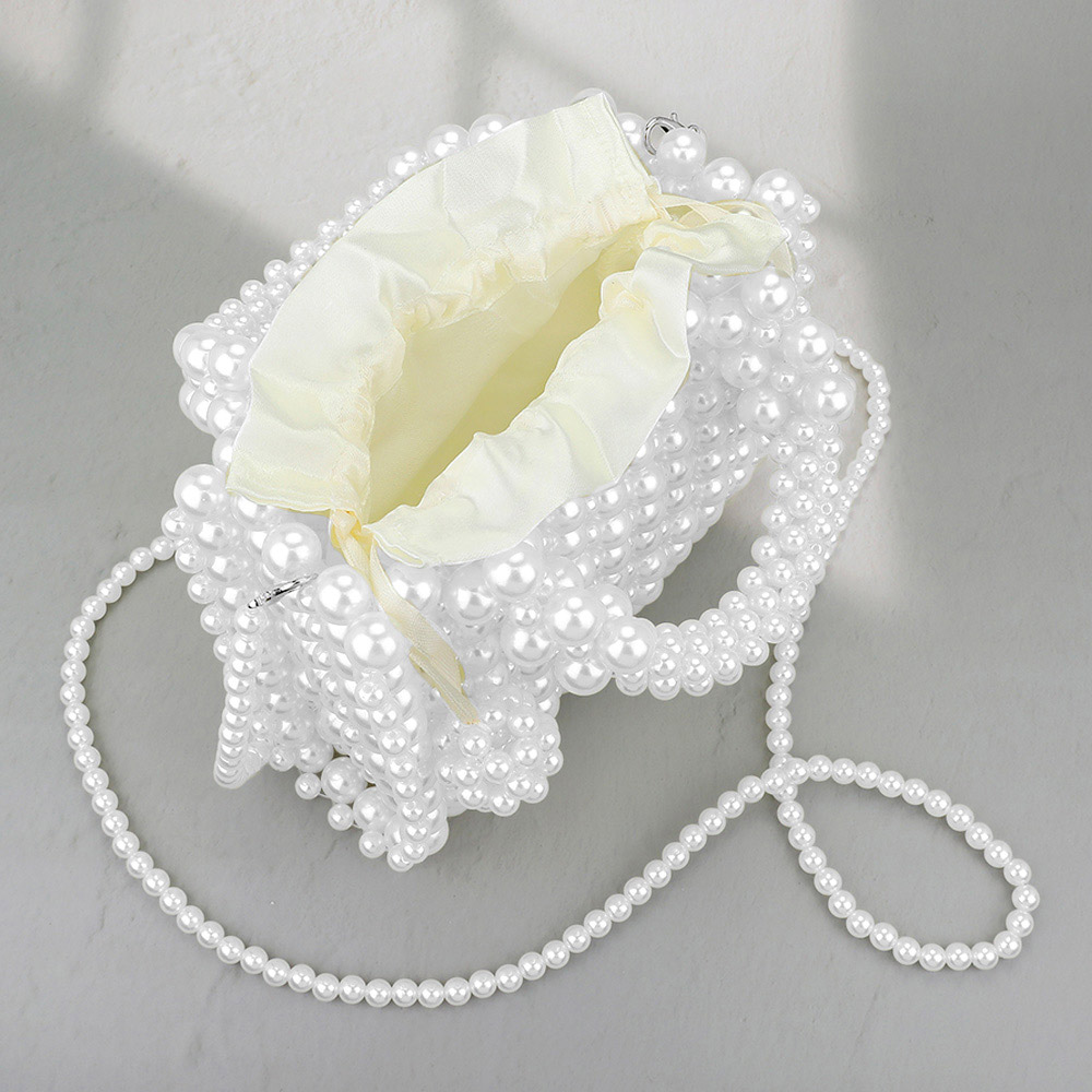 • Chic mini handbag featuring a structured pearl beaded exterior, dual handles, and a soft drawstring pouch. Ideal for weddings, parties, or formal events, it adds a refined and unique flair to any ensemble.