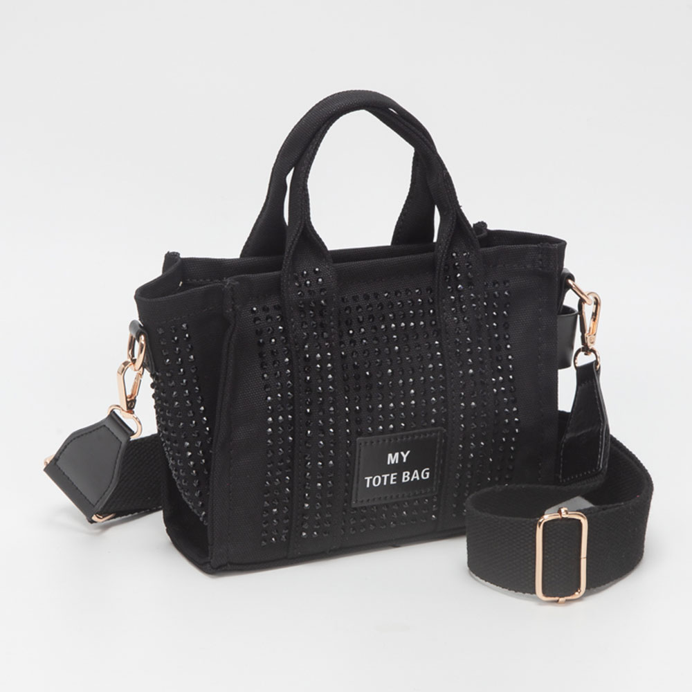• Stylish small tote bag featuring a structured silhouette accented with sparkling embellishments for eye-catching appeal. Designed with top handles and an adjustable strap, this compact bag is perfect for carrying small essentials while adding a playful, fashion-forward touch to everyday looks and boutique collections.