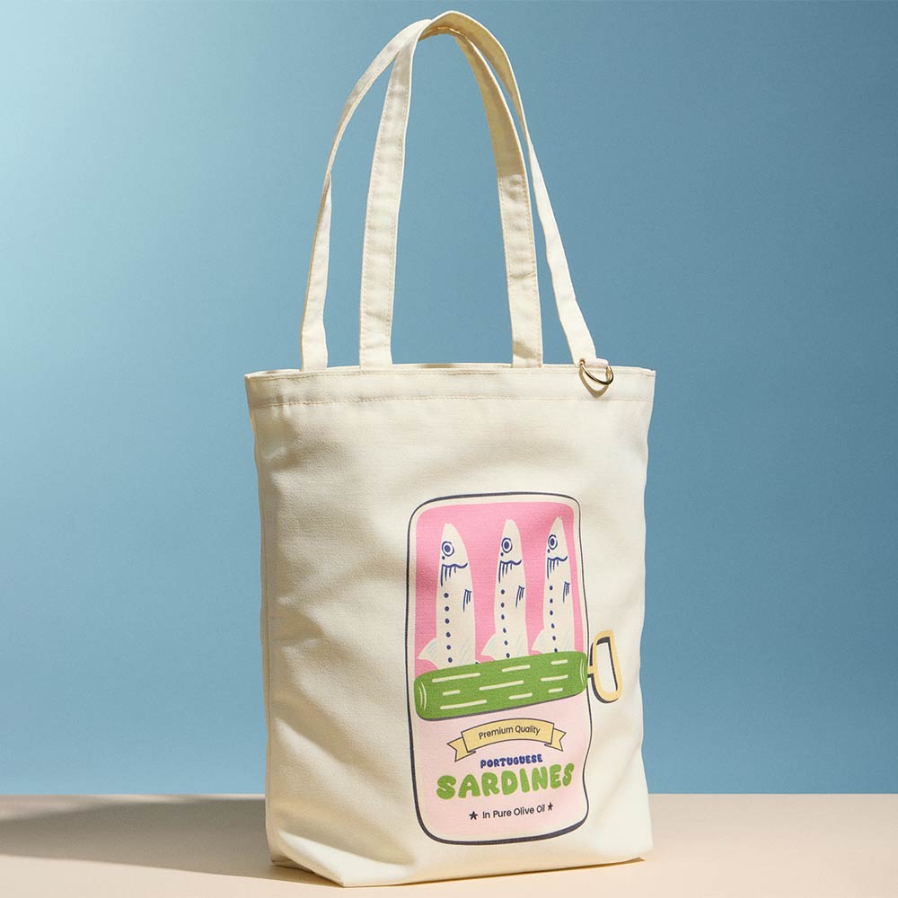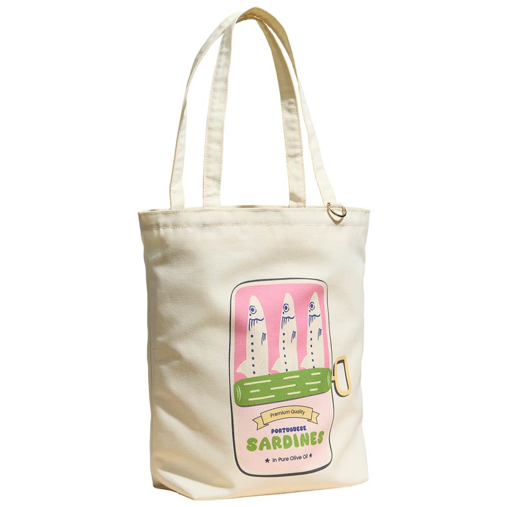 • Playful sardines graphic tote bag designed for everyday use and easy styling. Features comfortable shoulder straps and a spacious interior ideal for shopping, travel, beach days, or casual outings. A fun, novelty-inspired tote that adds personality to gift shops, boutiques, and seasonal lifestyle collections.