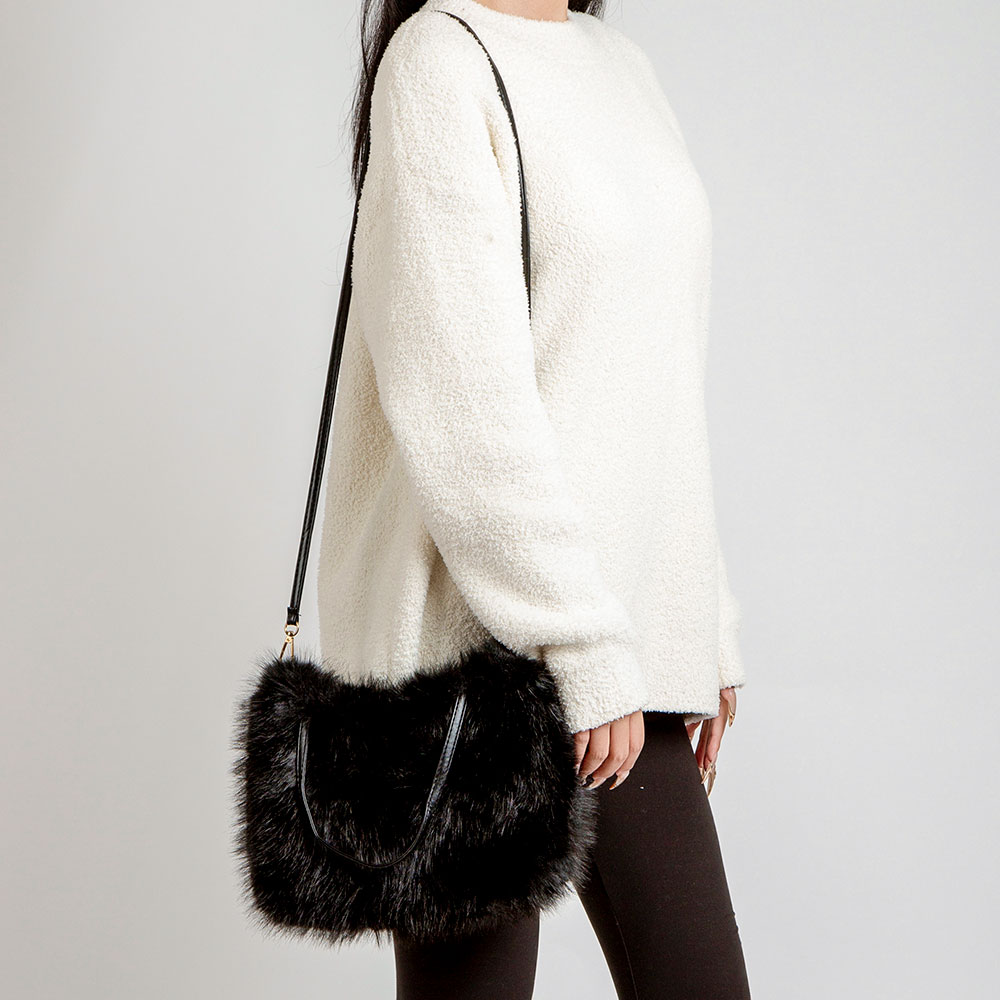 • Add a touch of soft sophistication to your outfit with this plush faux fur crossbody bag. Designed with a compact shape and comfortable strap, it offers both function and elegance, making it a versatile choice for casual outings or elevated day-to-night looks.