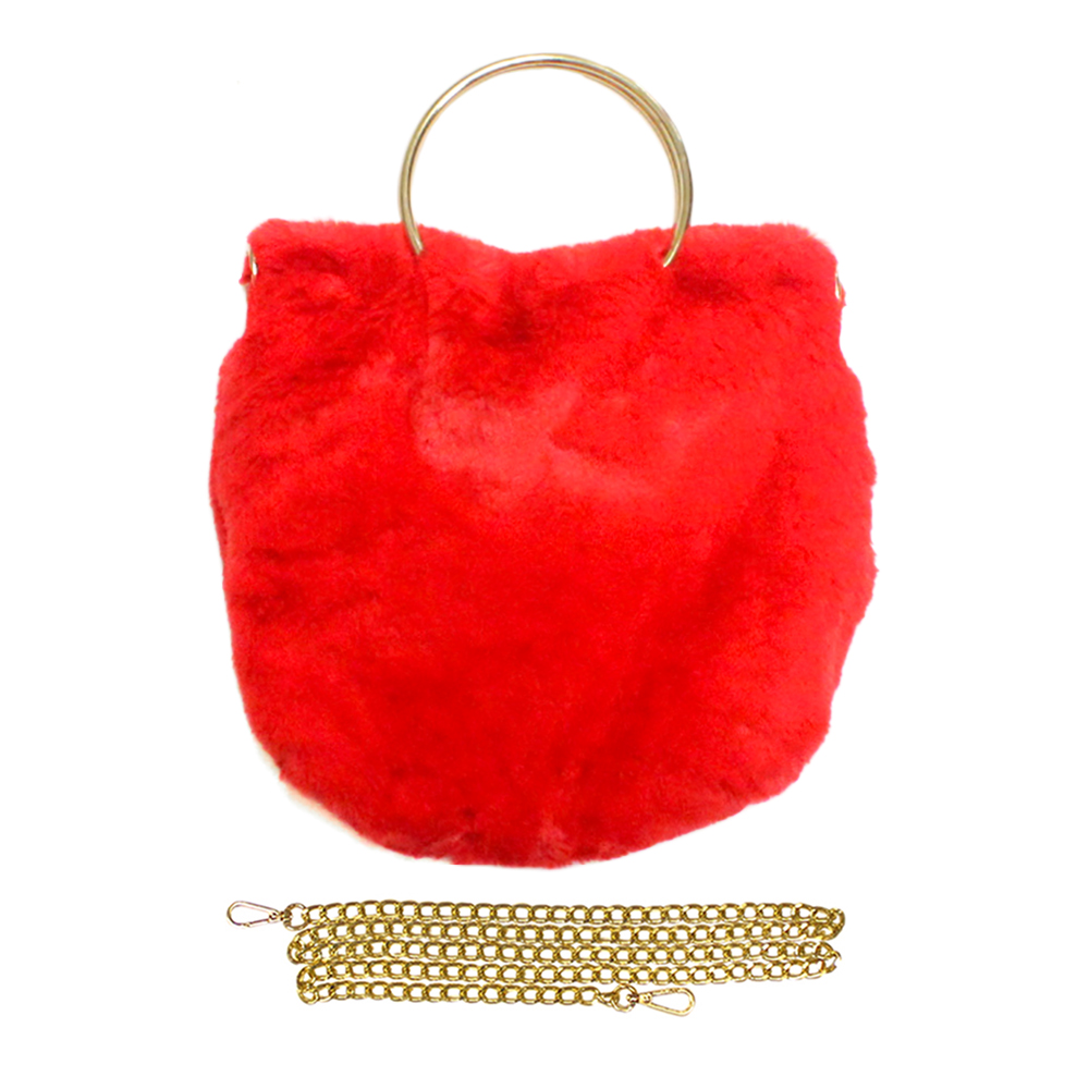 • Elevate your evening look with this faux fur crossbody bag, designed with a luxurious soft texture and elegant gold chain strap. Its compact silhouette and modern sophistication make it a perfect accessory for both special occasions and stylish everyday outings.