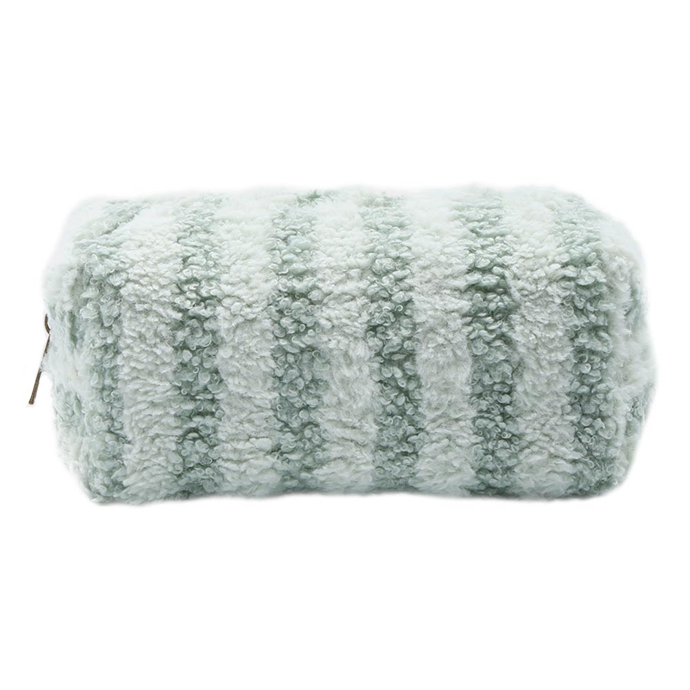 • Keep essentials organized with this soft plush striped zipper pouch. Featuring a cozy textured design and secure zip closure, it’s ideal for cosmetics, stationery, or travel accessories. A stylish and practical pouch for everyday use or gifting.