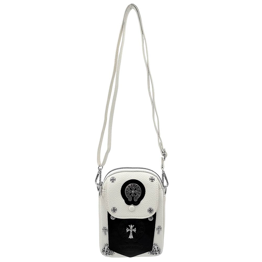 Details • Size : 5.1" X 7.1" X 1.2" • Strap Size : 54" L / Adjustable, Detachable • One Outside Snap Closure Slip Pocket • One Inside Slip Pocket • Zipper Closure • Material : 100% Polyurethane (Shell), 100% Polyester (Lining) • Compact crossbody bag designed for hands-free convenience and standout style. Features detailed accents and a structured shape ideal for carrying daily essentials. Perfect for casual outings, travel, concerts, or festivals, offering functional storage with a bold, fashion-forward look.