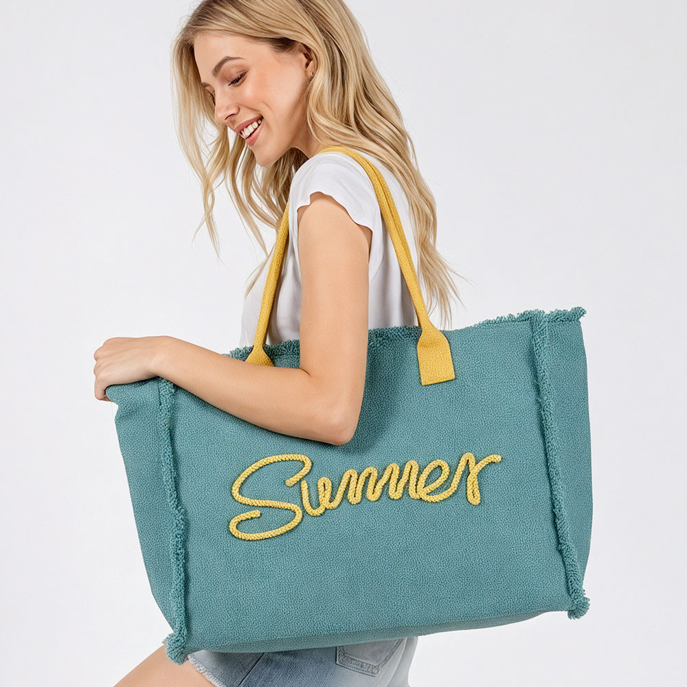 SUMMER Message Embroidered Fringe Canvas Tote Beach Bag