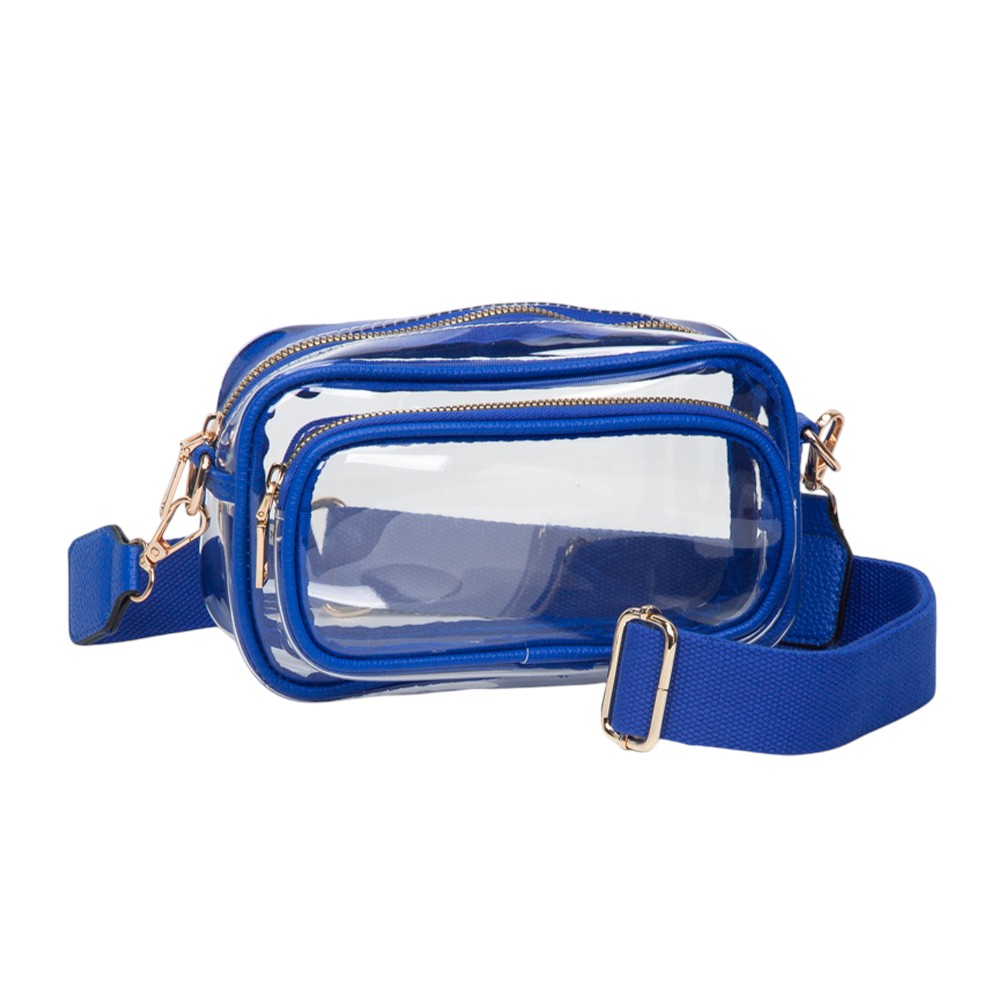 • Be game day ready with this clear stadium-approved crossbody bag, featuring white trim, dual zip compartments, and an adjustable strap for hands-free comfort. Perfect for concerts, sporting events, festivals, and venues with clear bag policies, offering style, security, and convenience on the go.