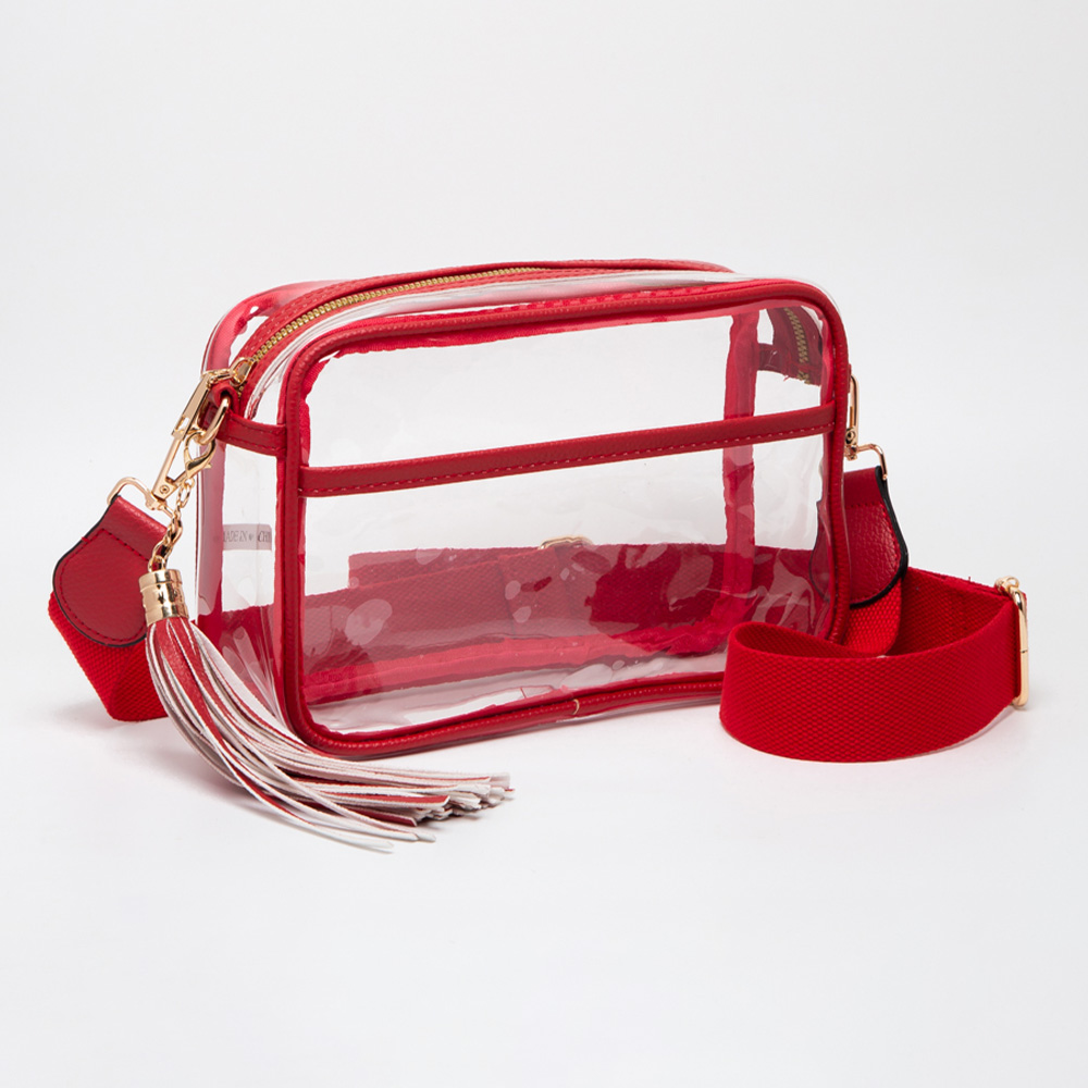 • Practical and stylish clear crossbody bag with zipper closure, tassel accent, and adjustable detachable strap for comfortable wear. Perfect for concerts, stadiums, festivals, or daily use where clear bags are required, offering secure storage and easy visibility of essentials.