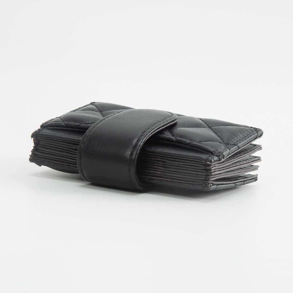Details • Size : 4" X 3" X 1" • 6 Card Slots • Snap Button Closure • This quilted snap closure card holder wallet combines elegance and practicality in a compact design. Featuring multiple slots for cards and essentials, it keeps your belongings organized and secure. Perfect for minimalists who value style and everyday convenience.