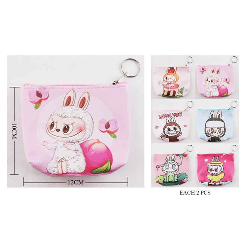 12PCS - Fun Monster Bunny Character Printed Mini Keychain Pouch Bags Coin Purses