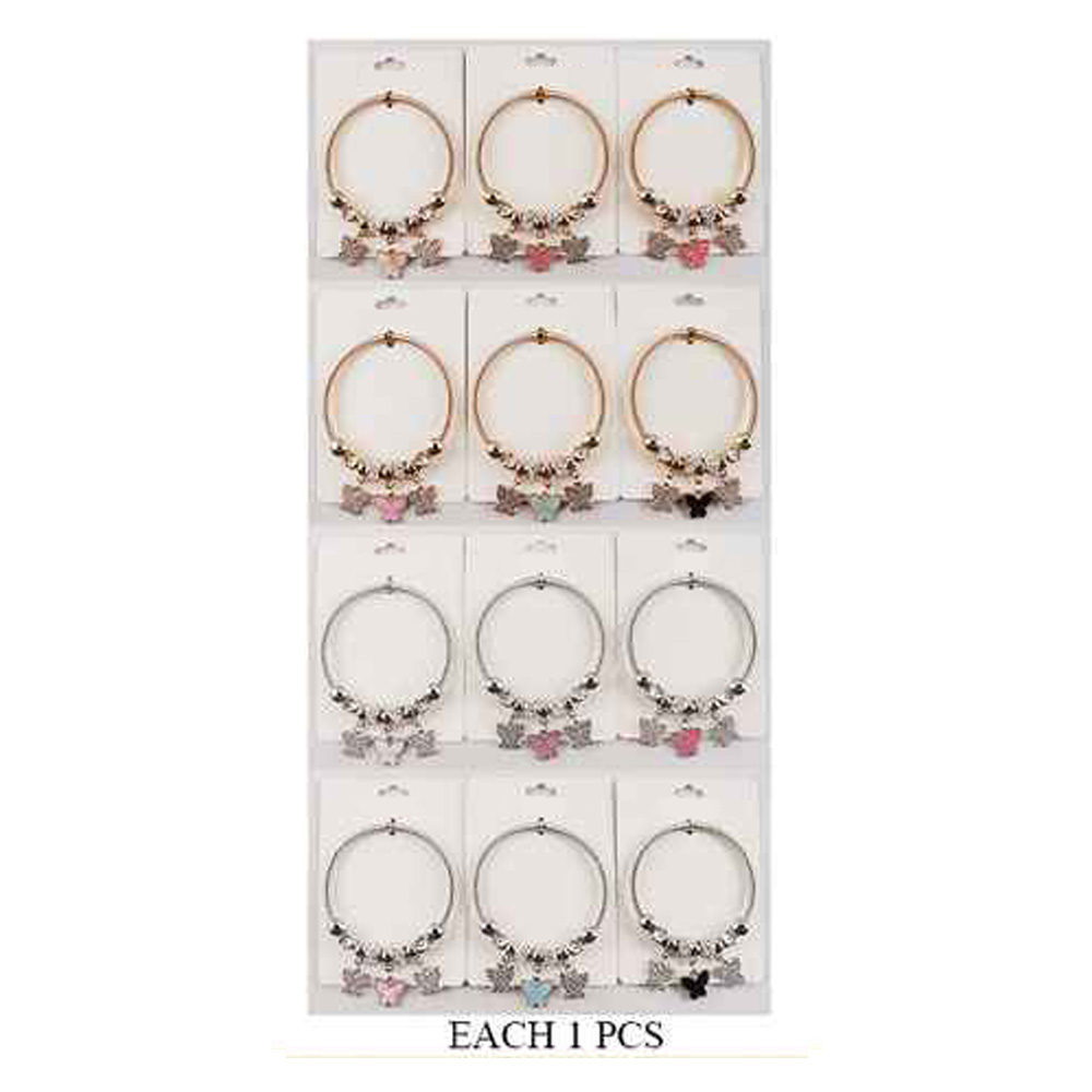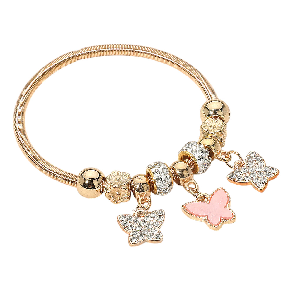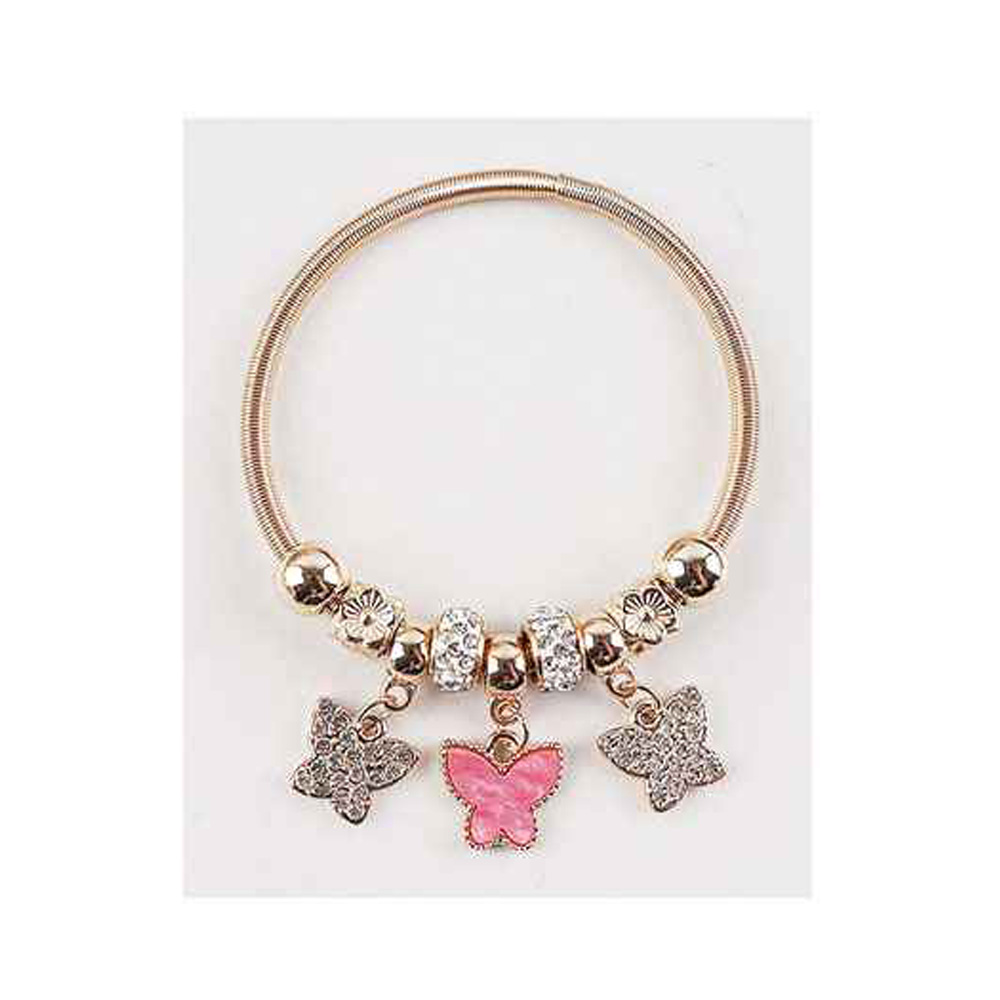 Details • Size : 0.2" H • Charm Size : 1.2" L • Stretchable • Add a touch of elegance with this charm bracelet featuring butterfly pendants and sparkling crystal accents. A stylish accessory that blends playful charm with timeless sophistication, perfect for everyday wear, special occasions, or as a thoughtful gift. • Lead and Nickel Compliant
