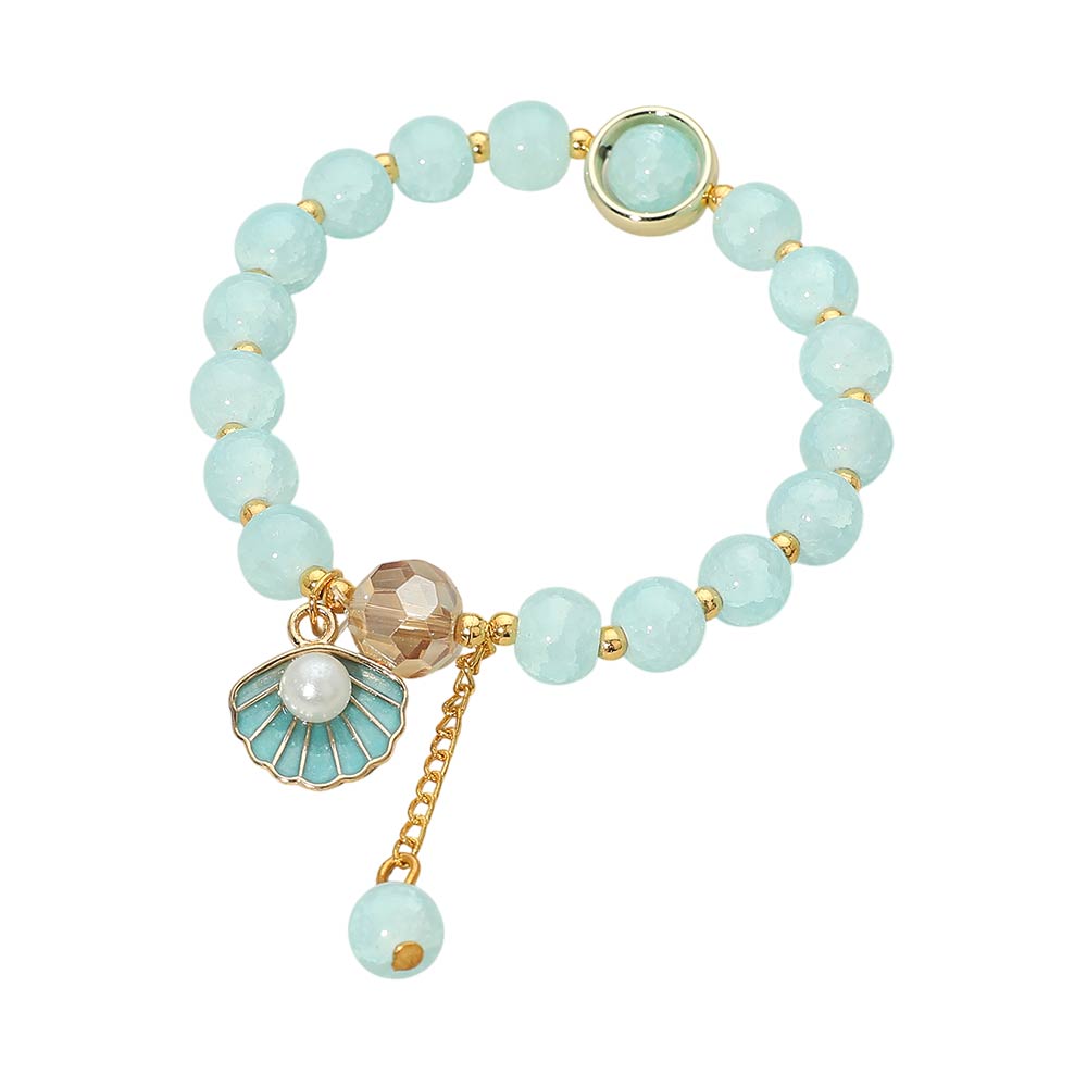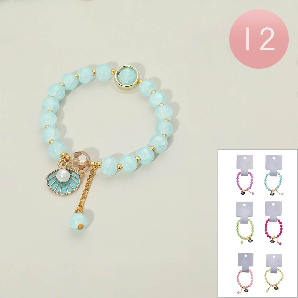 Details • Size : 1.25" H • Stretchable • This beaded stretch bracelet features a delicate shell charm with accent details for a playful, ocean-inspired look. Designed for easy wear and stacking, it’s ideal for everyday styling, seasonal collections, beach-themed gifts, and boutique jewelry assortments seeking a charming statement piece.