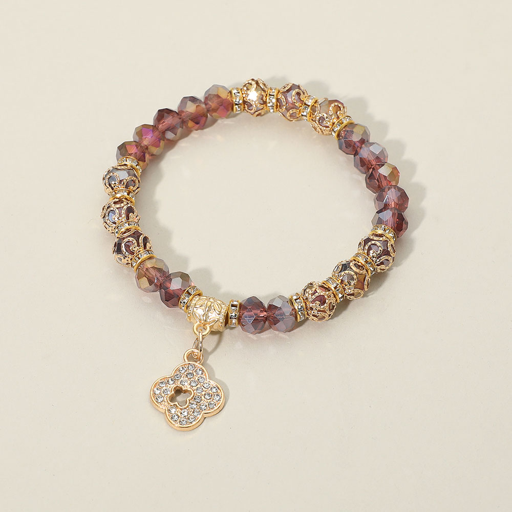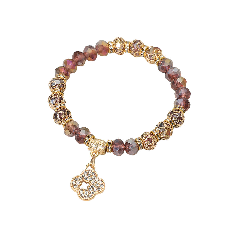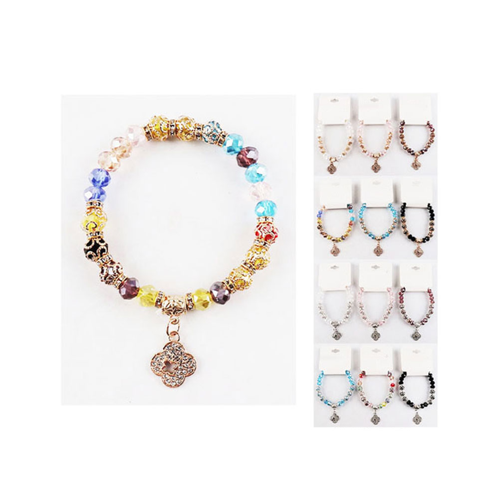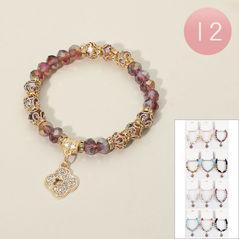 Details • Size : 0.3" H • Charm Size : 0.6" X 0.6" • Stretchable • This faceted bead stretch bracelet features ornate metallic bead accents and a sparkling rhinestone quatrefoil charm for a touch of refined glamour. Designed for easy wear and lasting comfort, it enhances any outfit with its elegant shimmer, perfect for both casual and special occasions.