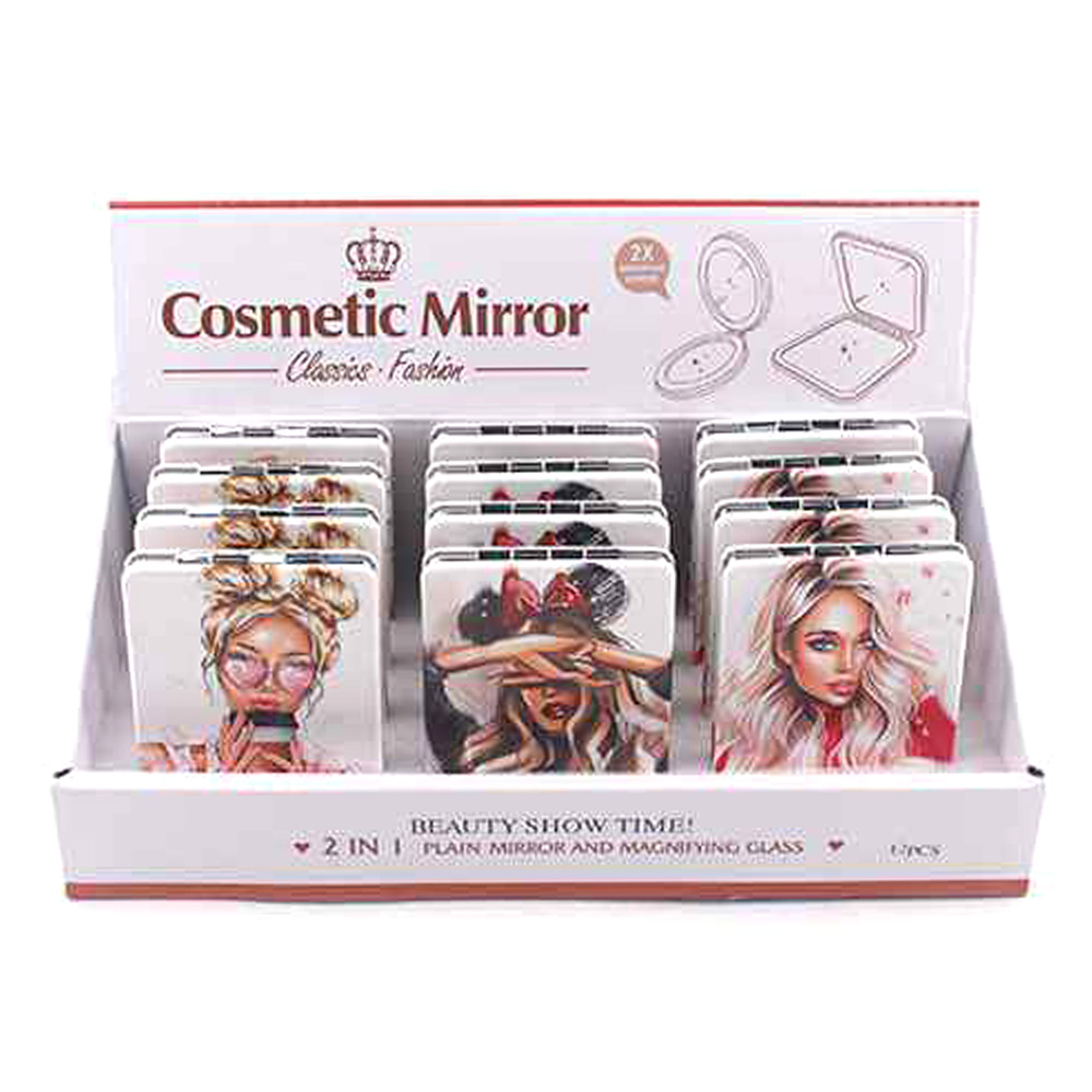 • Cute and compact folding mirror featuring trendy illustrated girl designs, perfect for quick touch-ups on the go. Slim, lightweight, and easy to slip into any purse or makeup bag. Includes assorted fashionable styles and dual mirrors for clear, convenient viewing anytime.