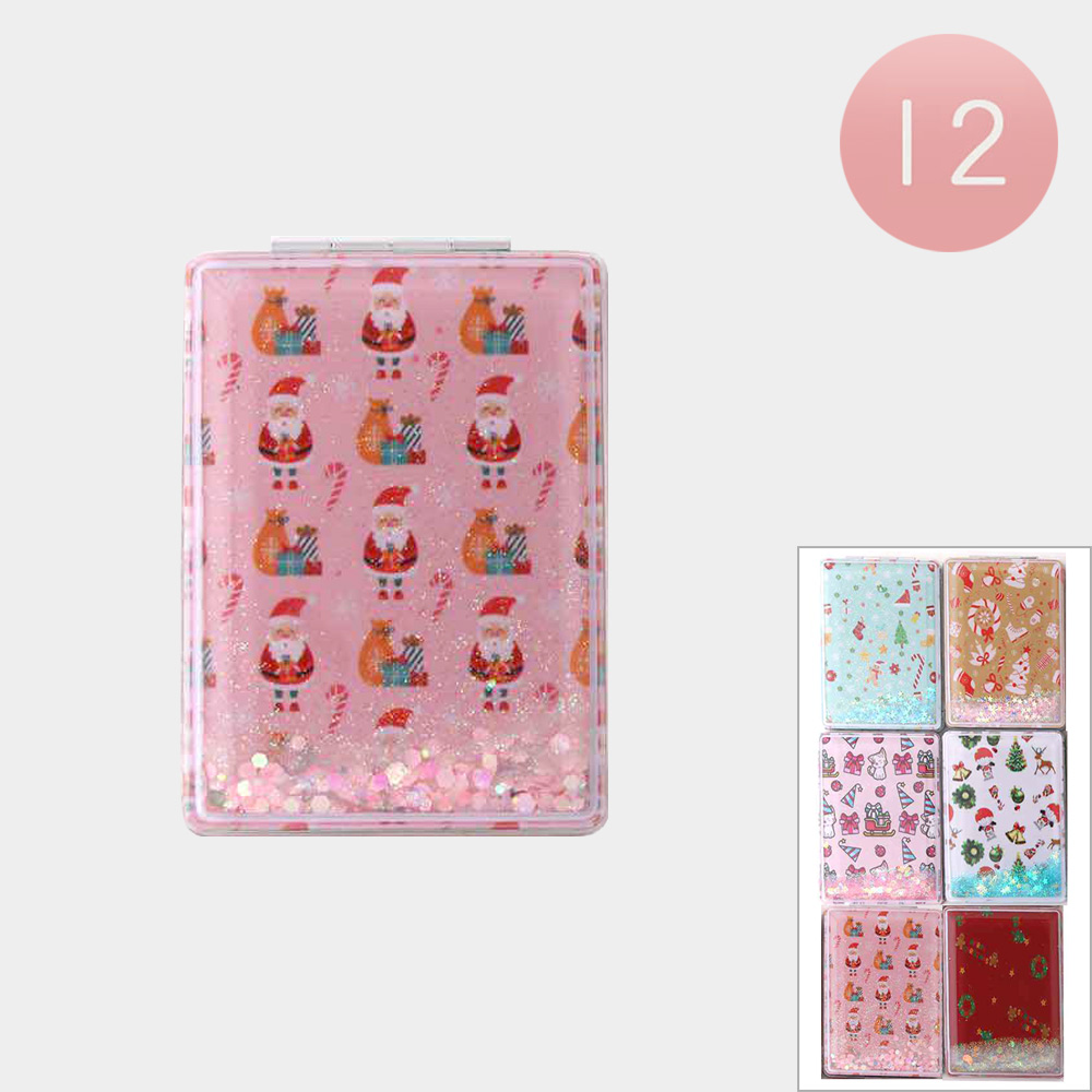 Details • Size : 2.4" X 3.25" • 2 In 1 - Plain Mirror And Magnifying Mirror • Festive compact mirror with cheerful Santa and candy cane designs, ideal for holiday touch-ups and gifting. Lightweight, portable, and decorative, this Christmas makeup mirror adds seasonal charm to your daily essentials.