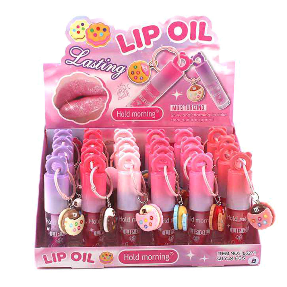 Details • Size : 4" L • Charm Size : 0.8" X 0.8" • Trendy lip oil accessory designed with a wearable bracelet and attached keychain charm for easy carrying. Combines beauty and playful style, making it ideal for party favors, gift assortments, and novelty displays. A fun, portable cosmetic item that adds excitement to everyday beauty routines.