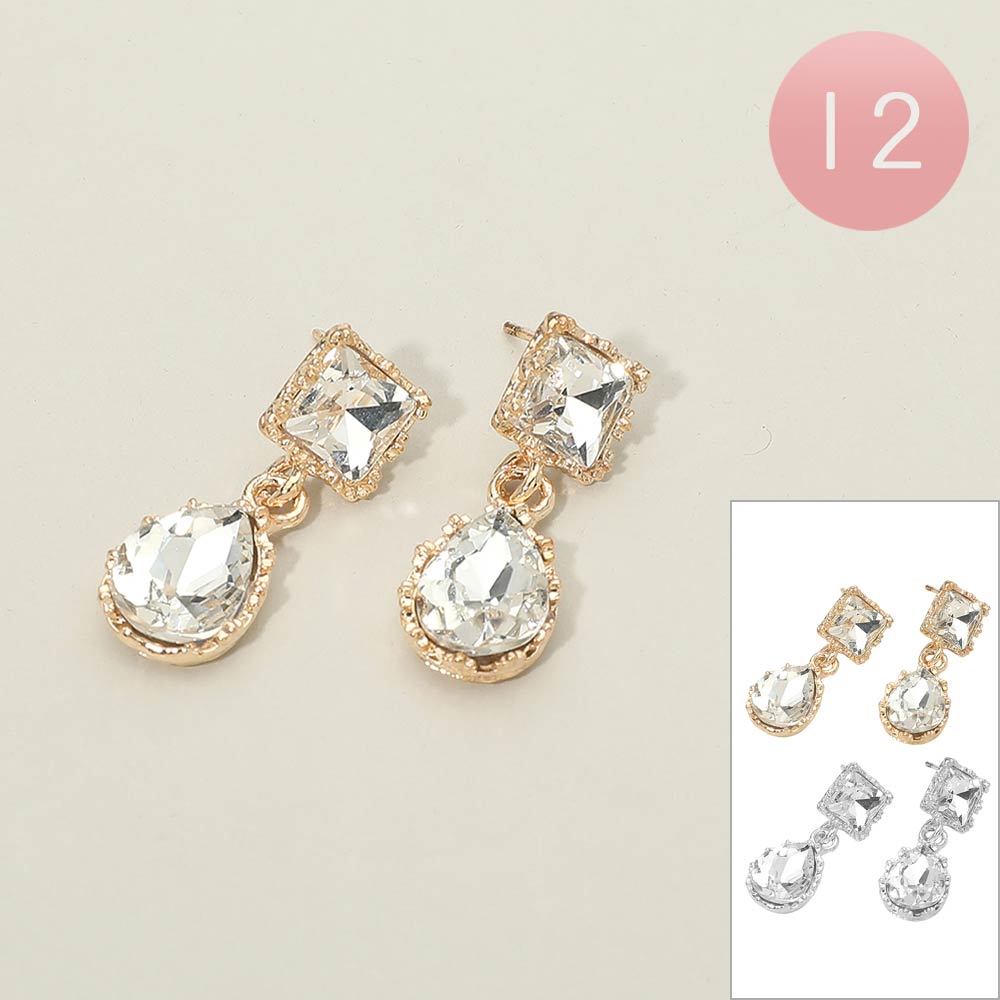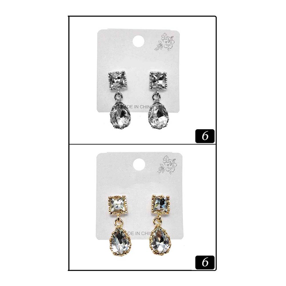 12Pairs - Faceted Rectangle Teardrop Stone Drop Earrings
