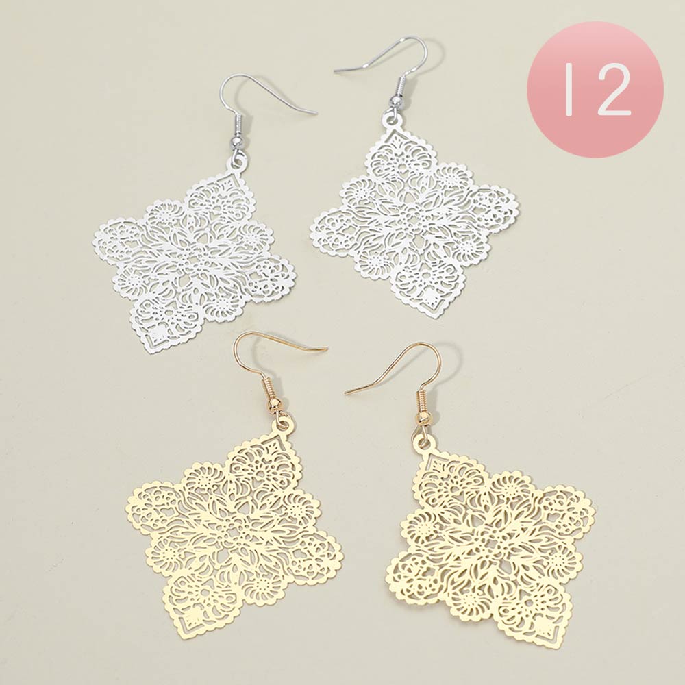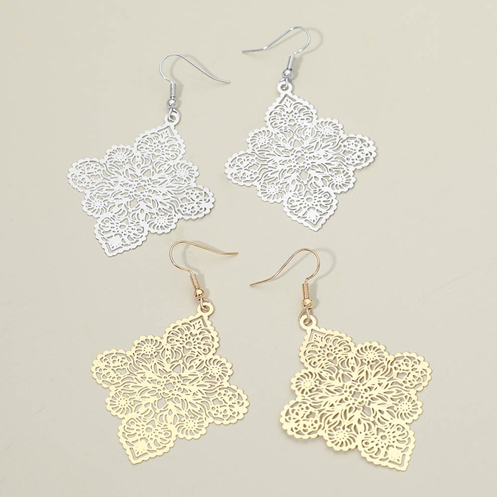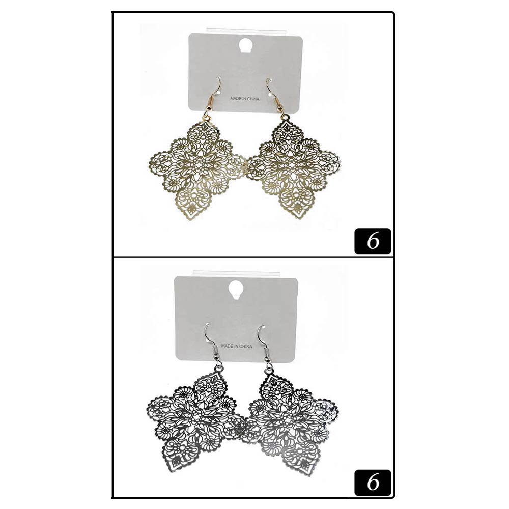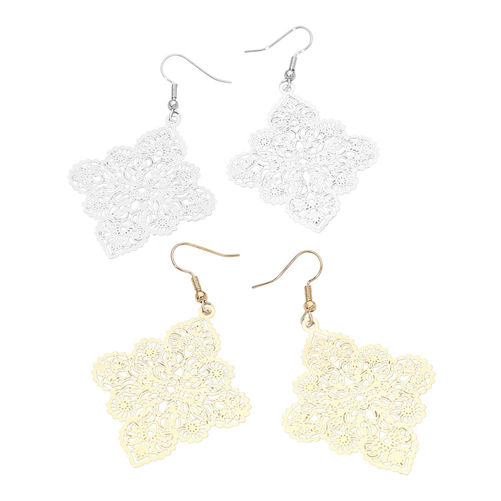 Details • Size : 1.6" X 2.6" • Fish Hook Back • Intricate floral filigree drop earrings designed with delicate openwork details for a refined, feminine look. Lightweight and easy to wear, they add graceful movement to everyday outfits, events, and special occasions. Perfect for gifting, vacations, and elevating modern, boho, or romantic accessory collections.